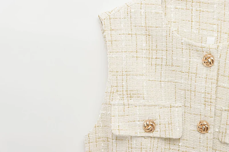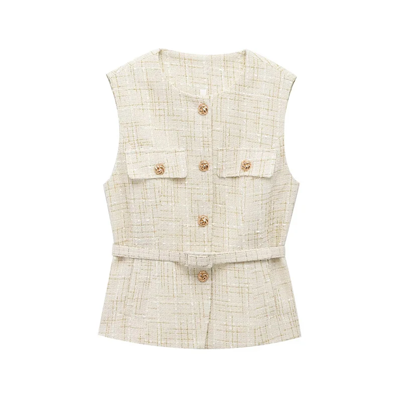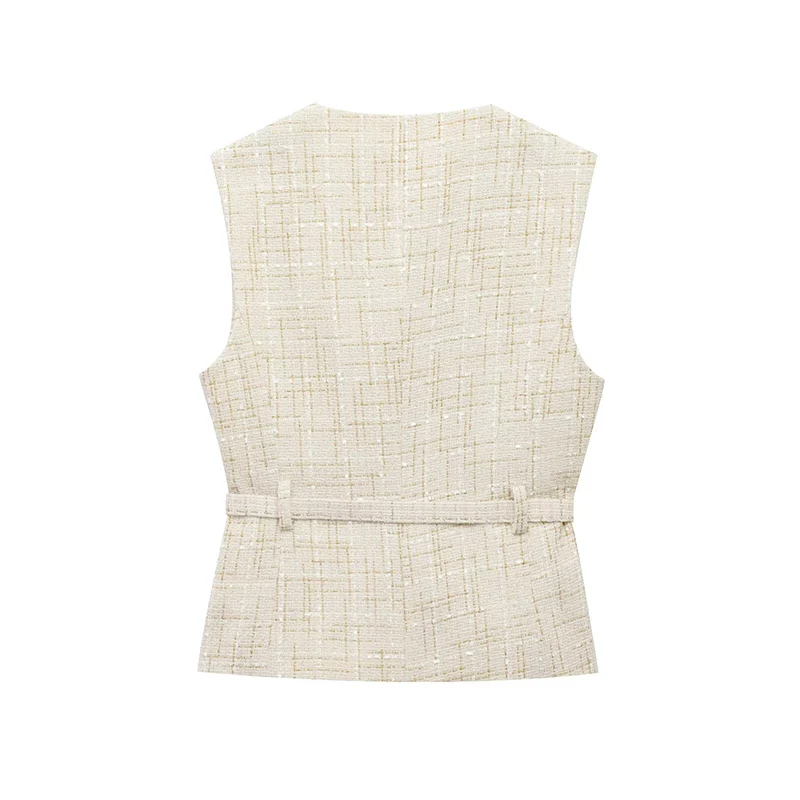 Belted Tweed Sleeveless Vest for Women