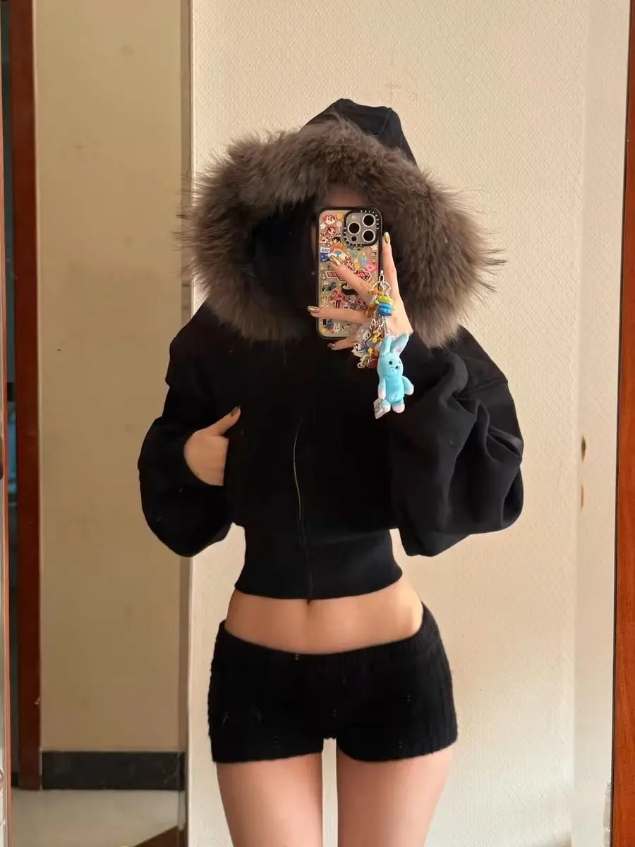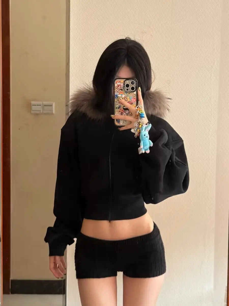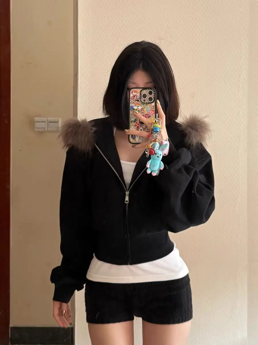 Be the first to review “Black Fur Collar Zipper Hoodie”
