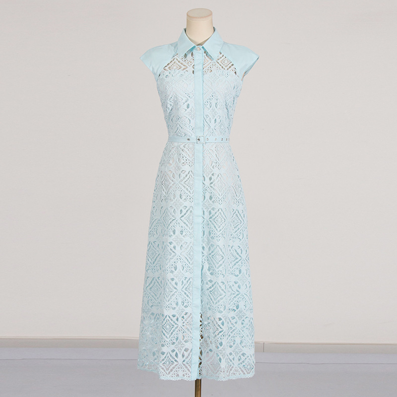 Bohemian Embroidered Cutout Polo Collar Summer Dress