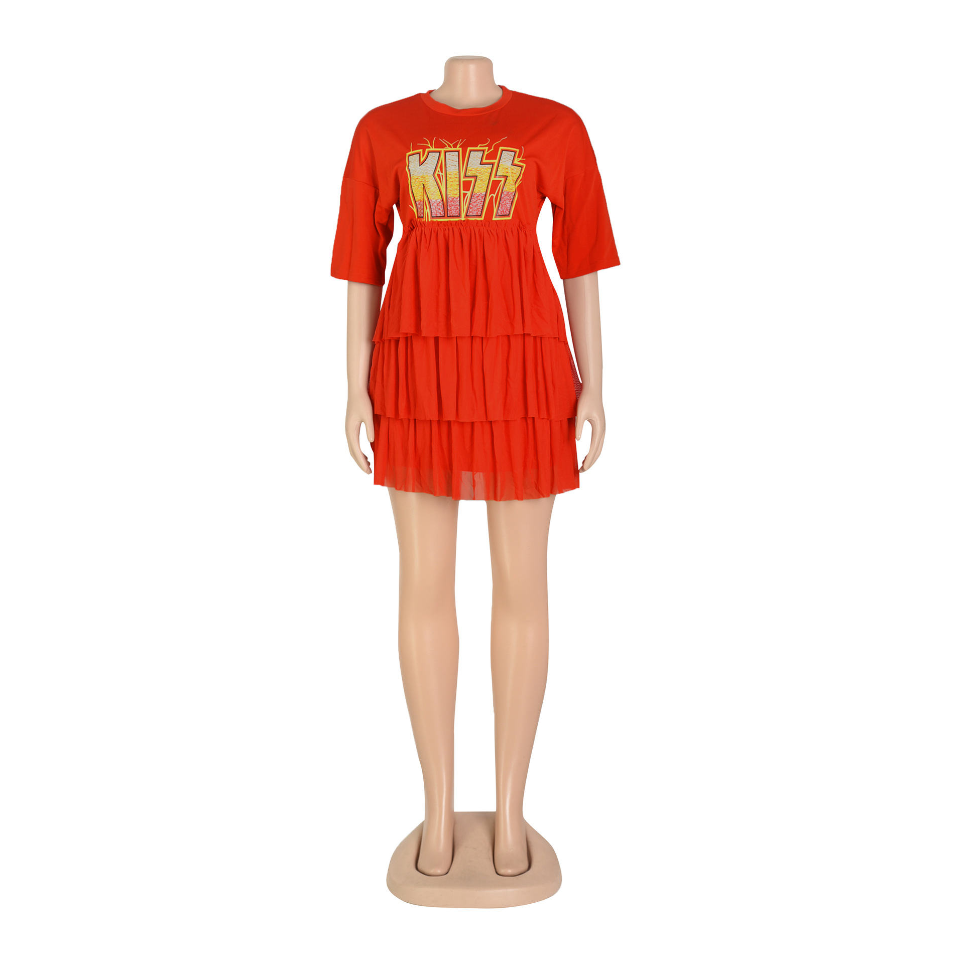 Casual Printed Mesh Tiered Dress for Summer