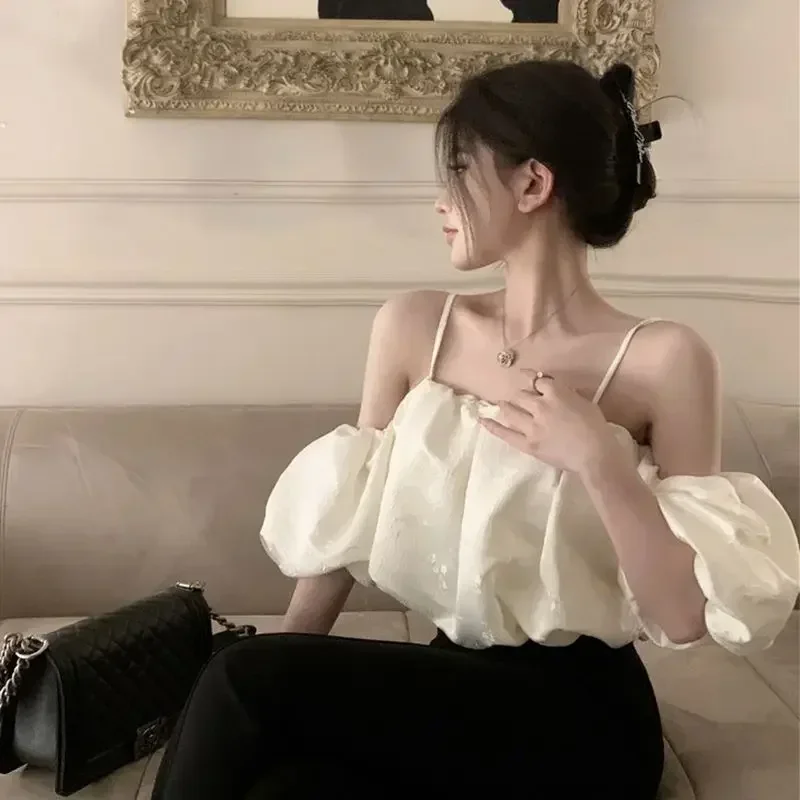 Chic Off-Shoulder Bubble Sleeve Top for Women