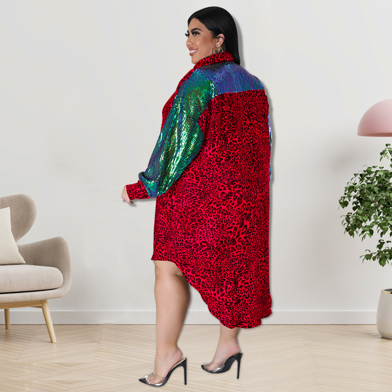 Curvy Leopard Print Long Sleeve T-Shirt Women