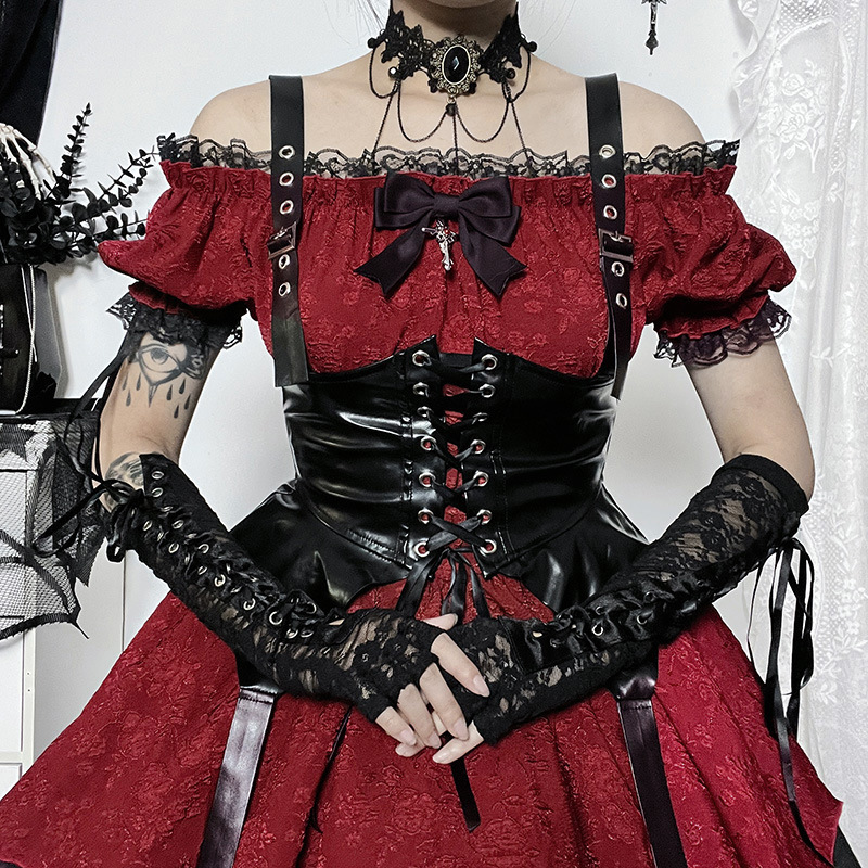 Dark Academia Lace Puff Sleeve Dress Grunge Style