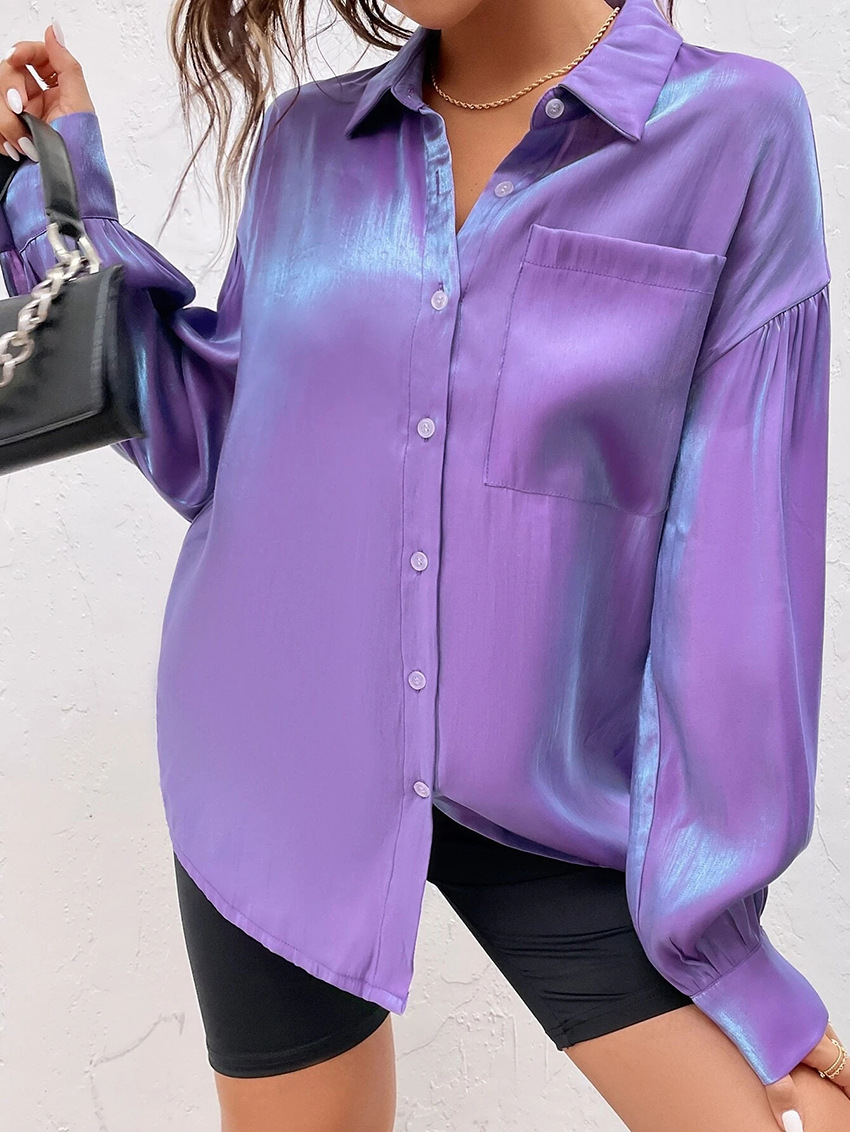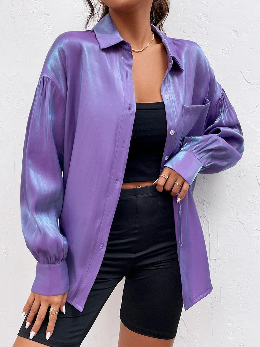 Autumn Women Long Sleeved Velvet Satin Stitching Shirt
