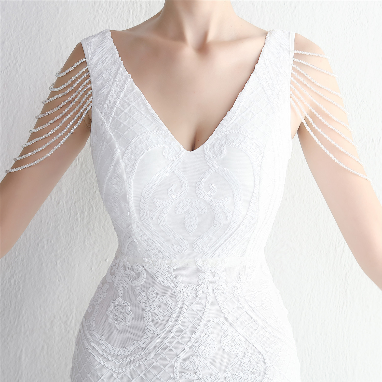 Elegant Beaded Large Swing Long Fishtail Dress