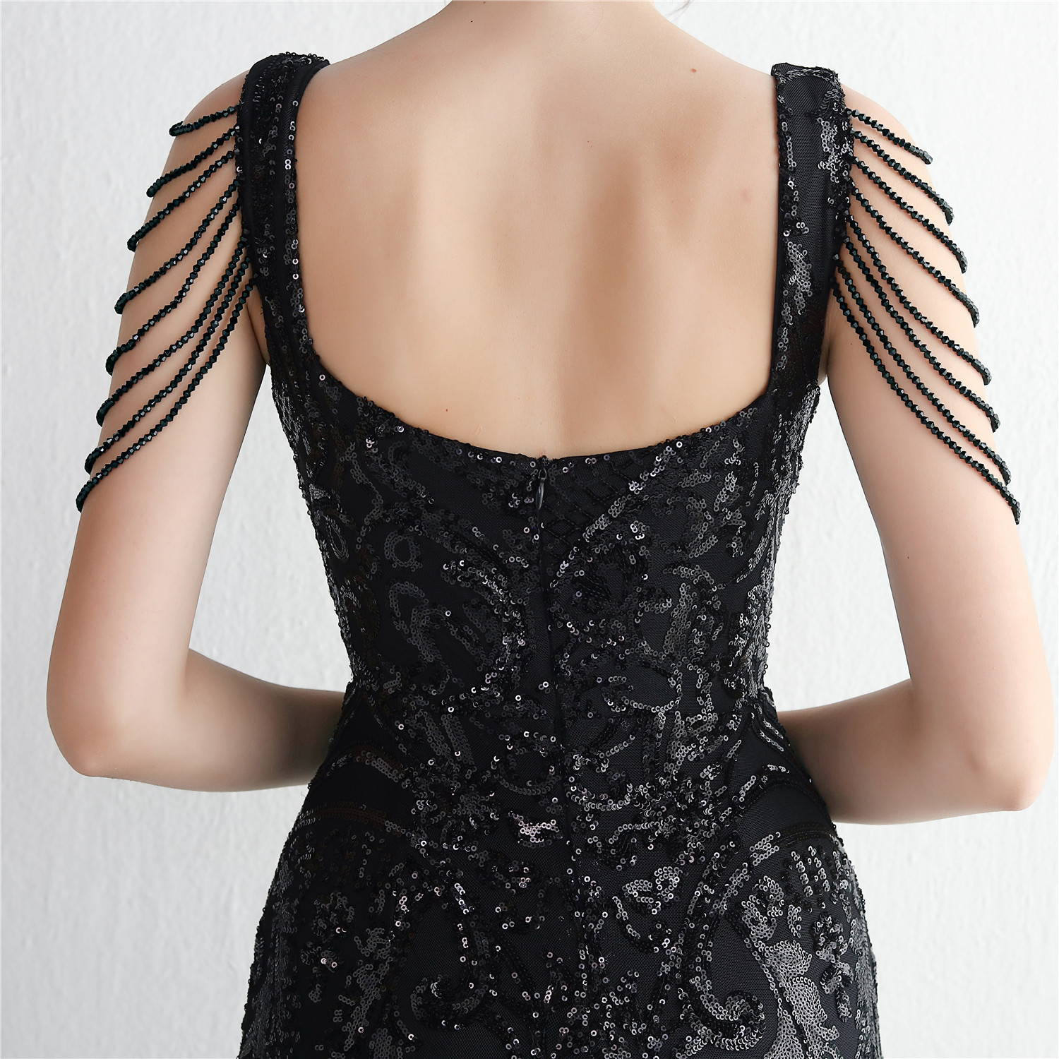 Elegant Beaded Sequin Mesh Slim Fit Evening Dress