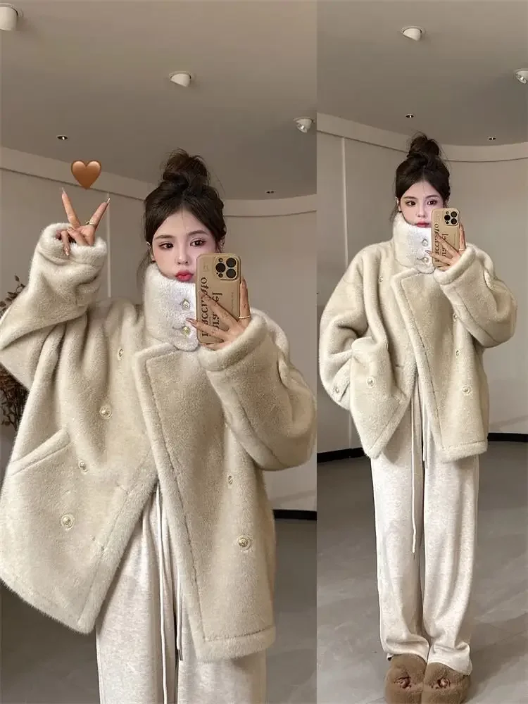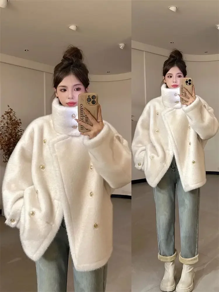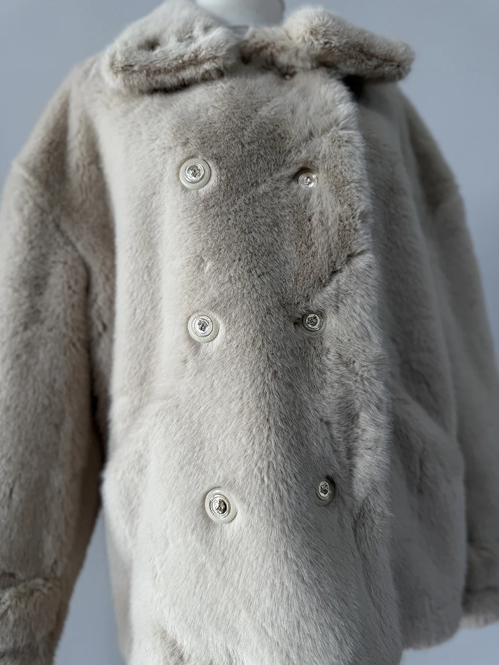 Elegant Double-Breasted Faux Fur Coat