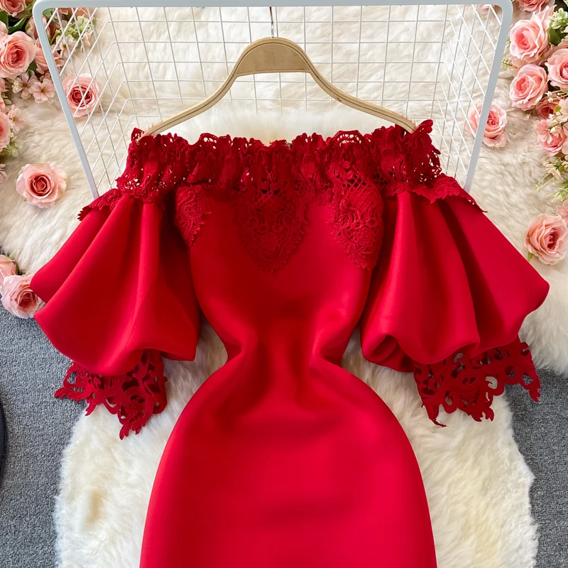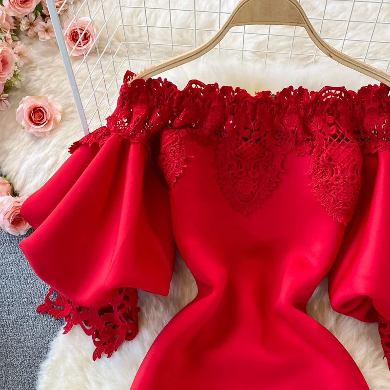 Elegant French Style High Waist Lace Dress