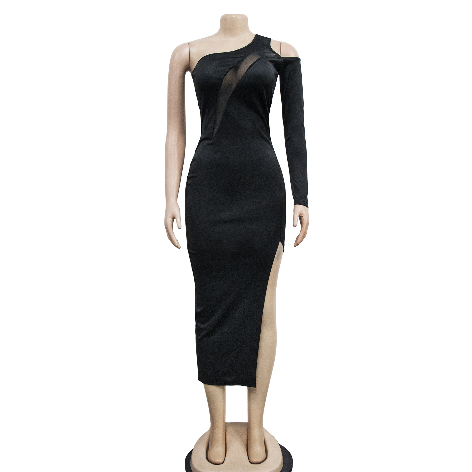 Elegant One-Shoulder Mesh Sleeve Dress