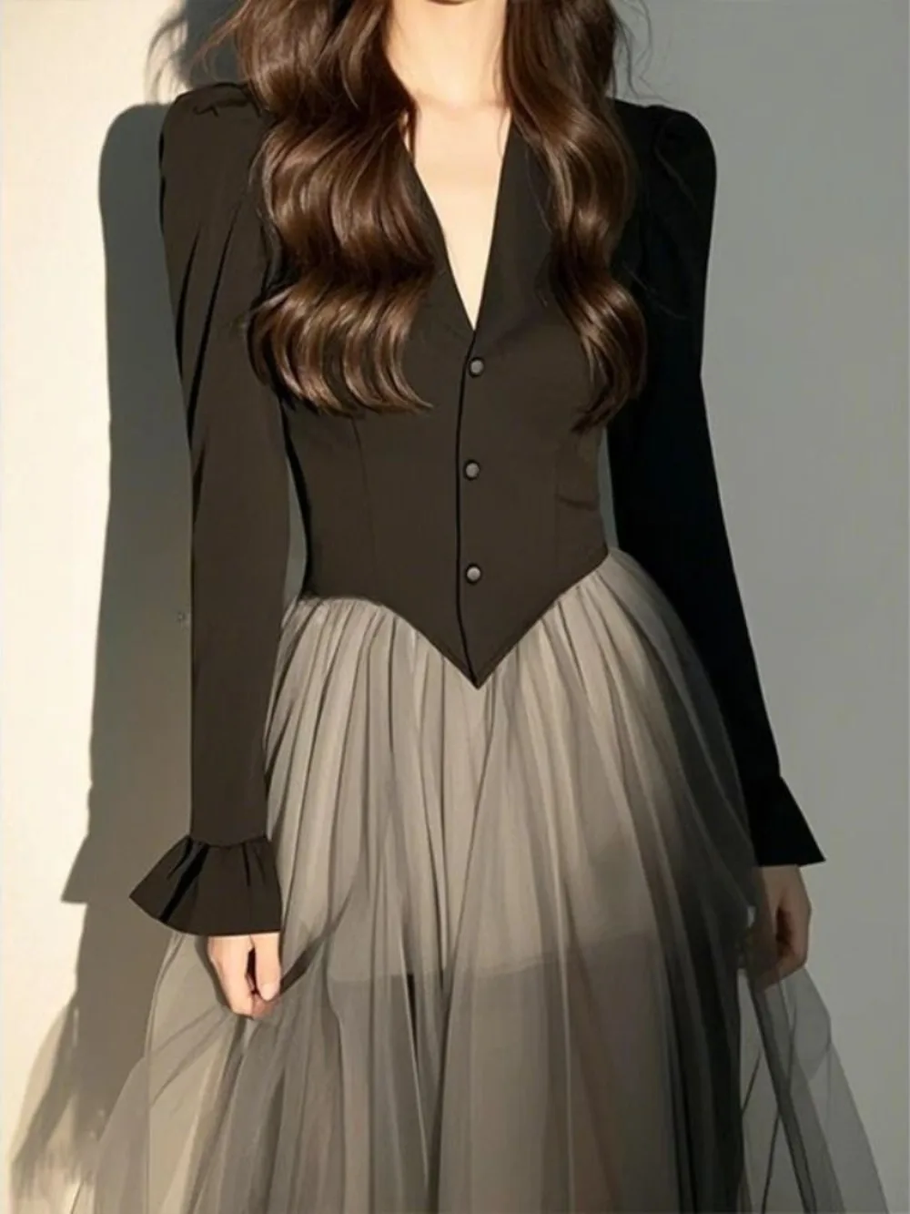 Be the first to review “Elegant Vintage Patchwork Mesh Dress for Women”