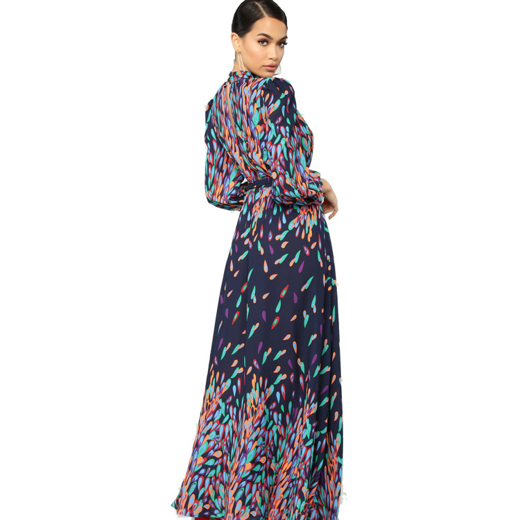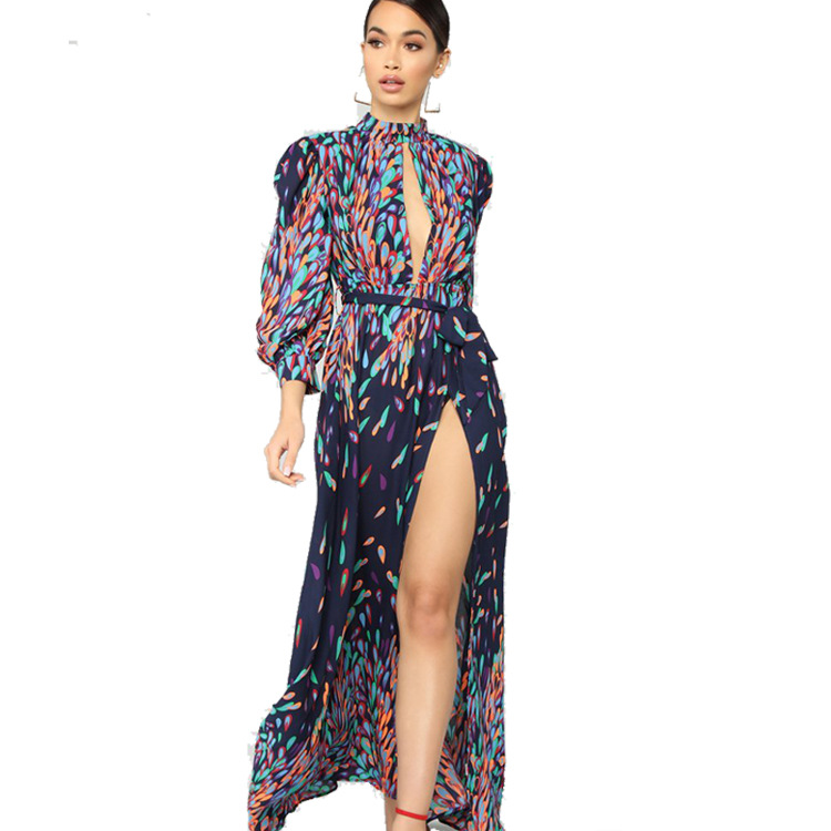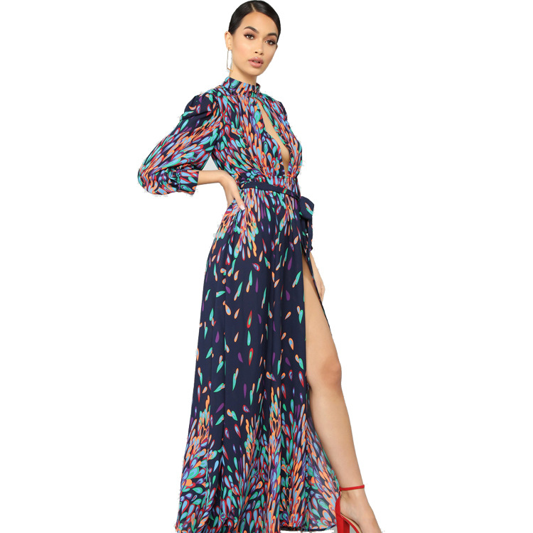 Fall Printed Split Loose Fit Chest Cutout Dress