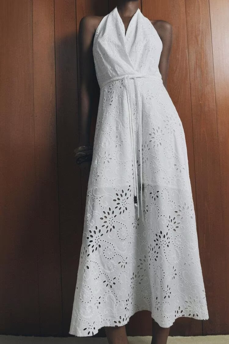 Fashionable Autumn Embroidered Hanging Collar Dress Women