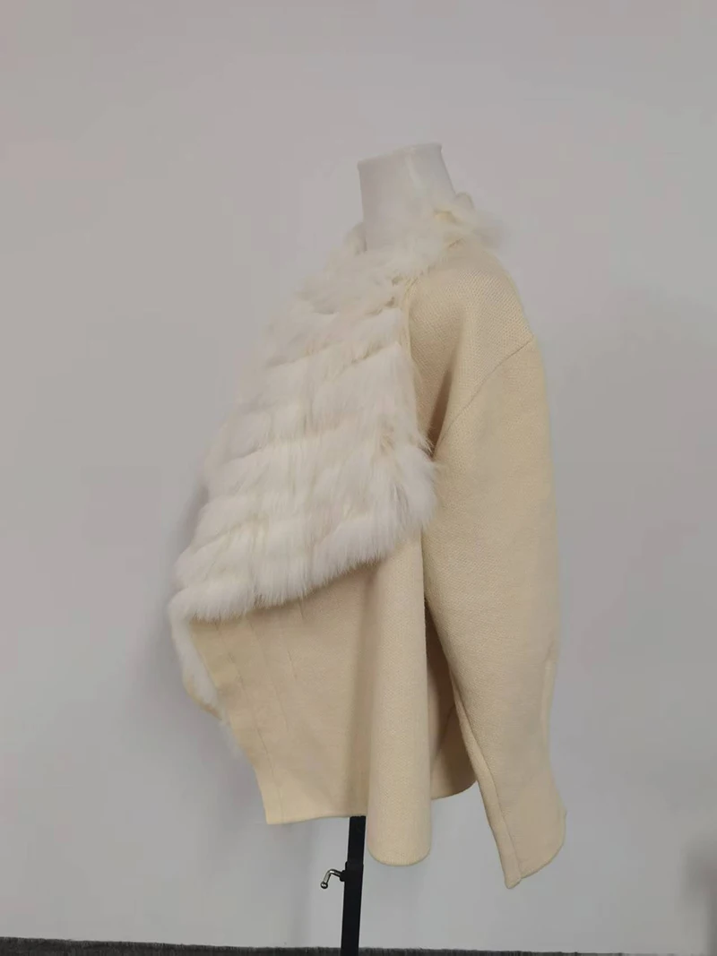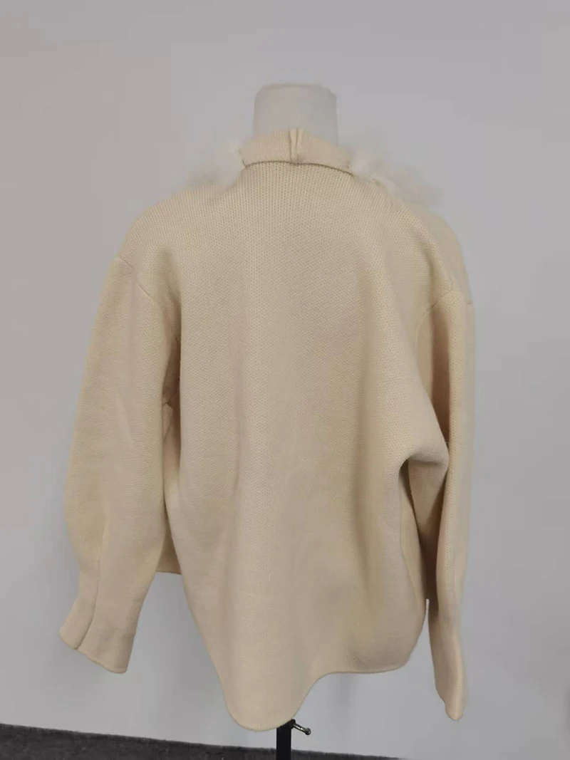 Faux Fur Trim Knit Coat for Women