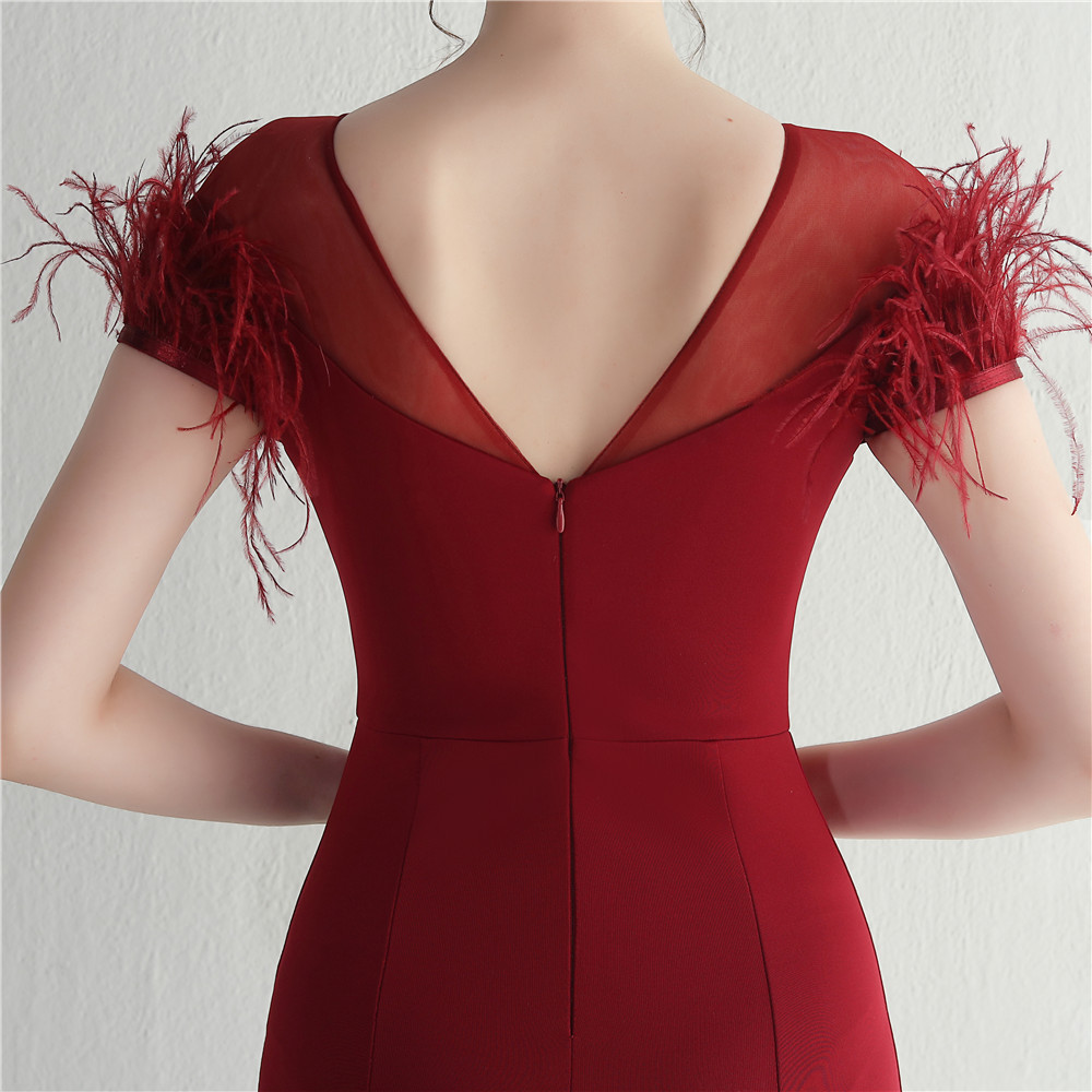 Feather Mesh Rhinestone Star Red Carpet Dress