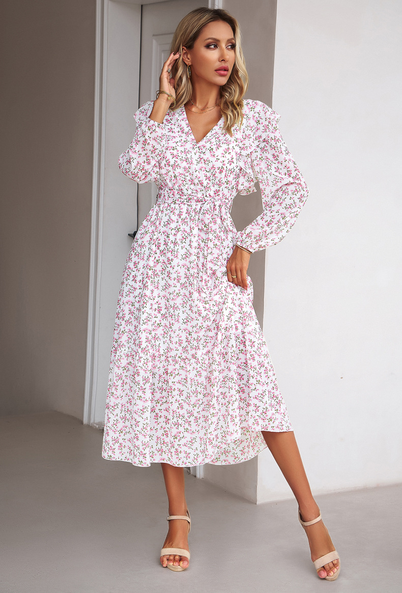 Elevate your autumn and winter wardrobe with our Floral V-neck Long Sleeve Dress. This dress combines the elegance of a V-neck design with the beauty of floral patterns, making it perfect for casual wear during the colder months. The long sleeves provide warmth and style, making it a versatile choice for various occasions. Whether you’re going for a cozy brunch or a night out with friends, this dress has you covered. Its comfortable fabric and flattering silhouette ensure you stay fashionable and comfortable all season long. Embrace the floral charm of autumn and winter with our Floral V-neck Long Sleeve Dress.