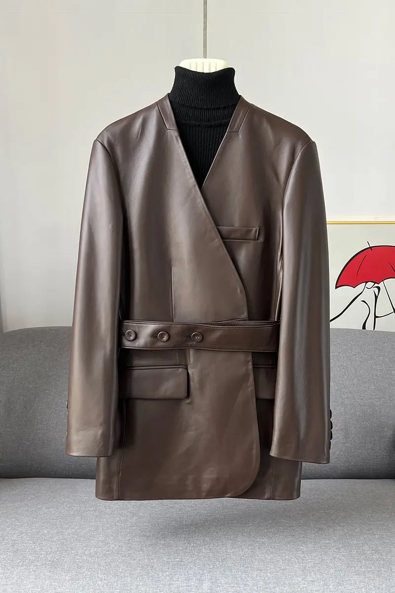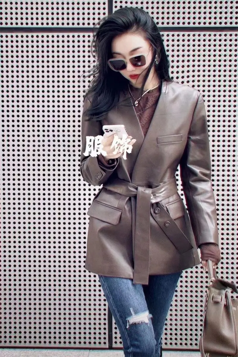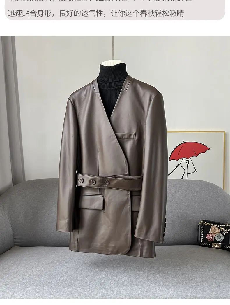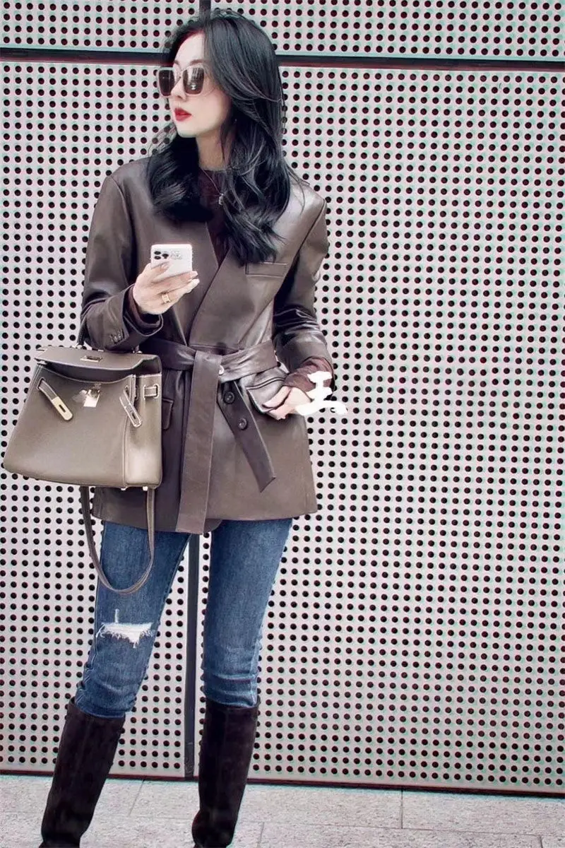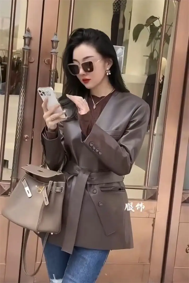 French Elegant PU Leather Blazer Women