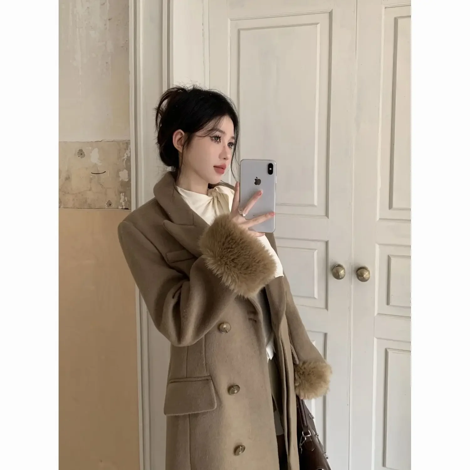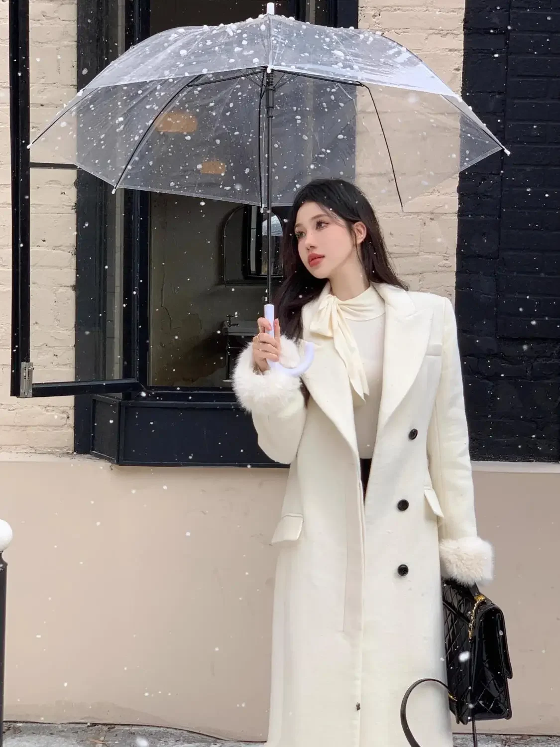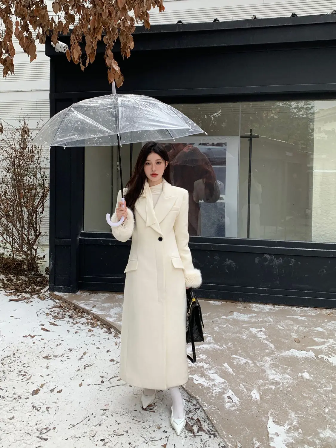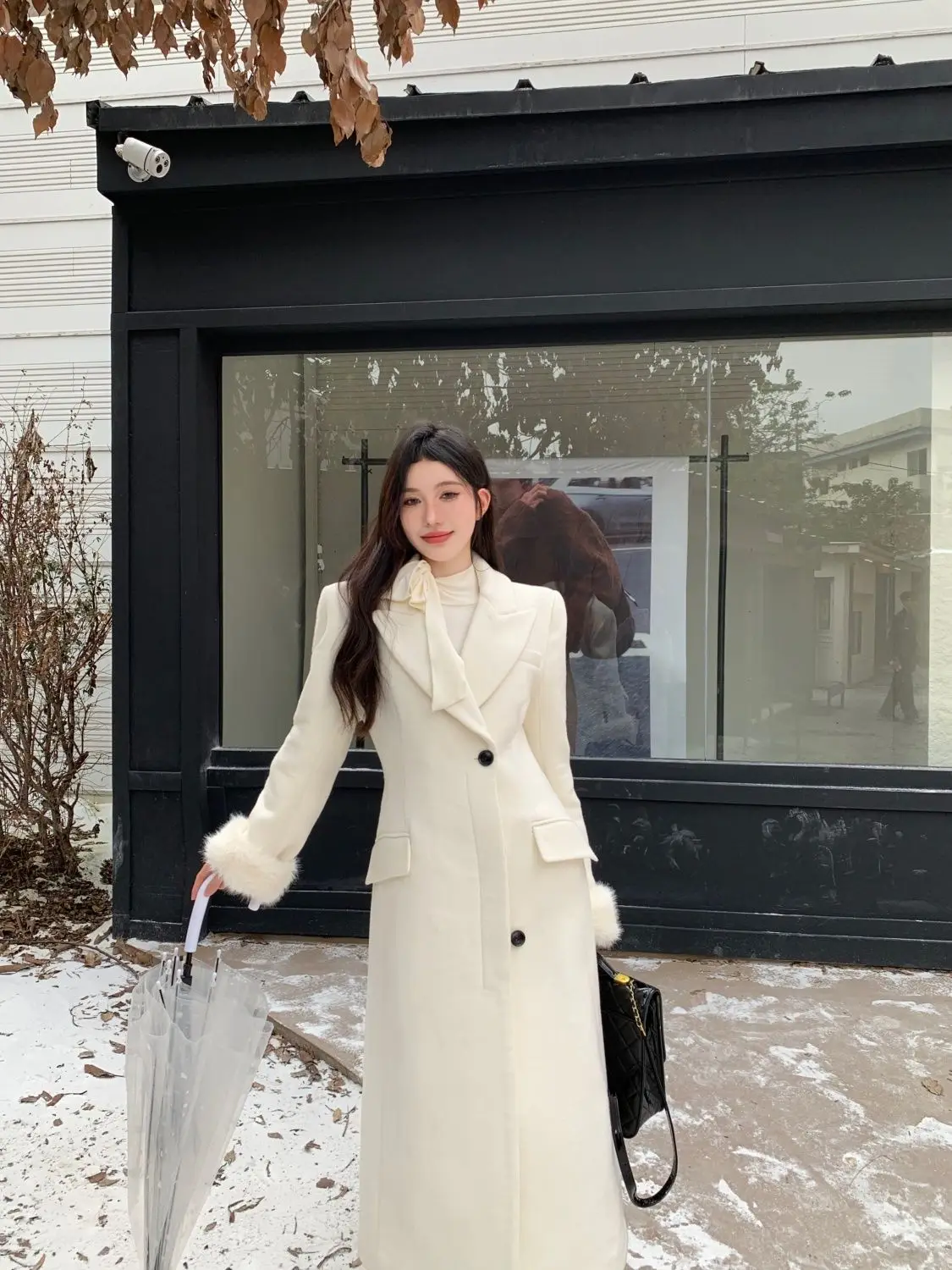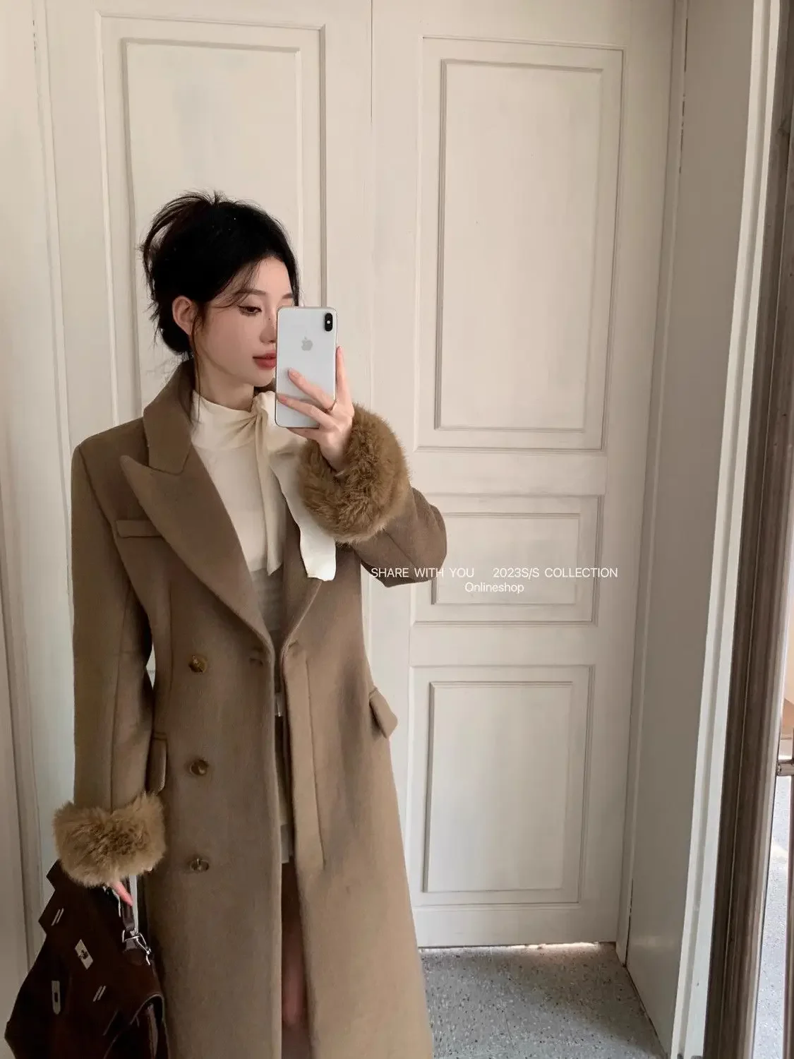 French Elegant Wool Blend Long Coat for Women Fall Winter