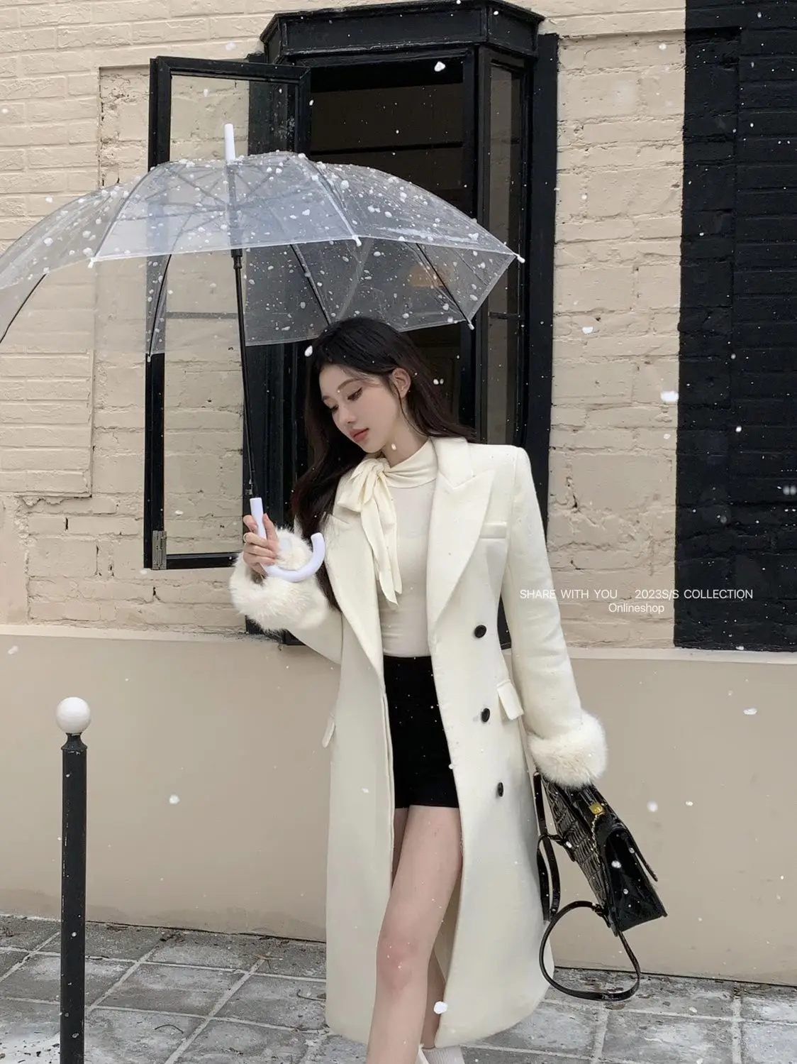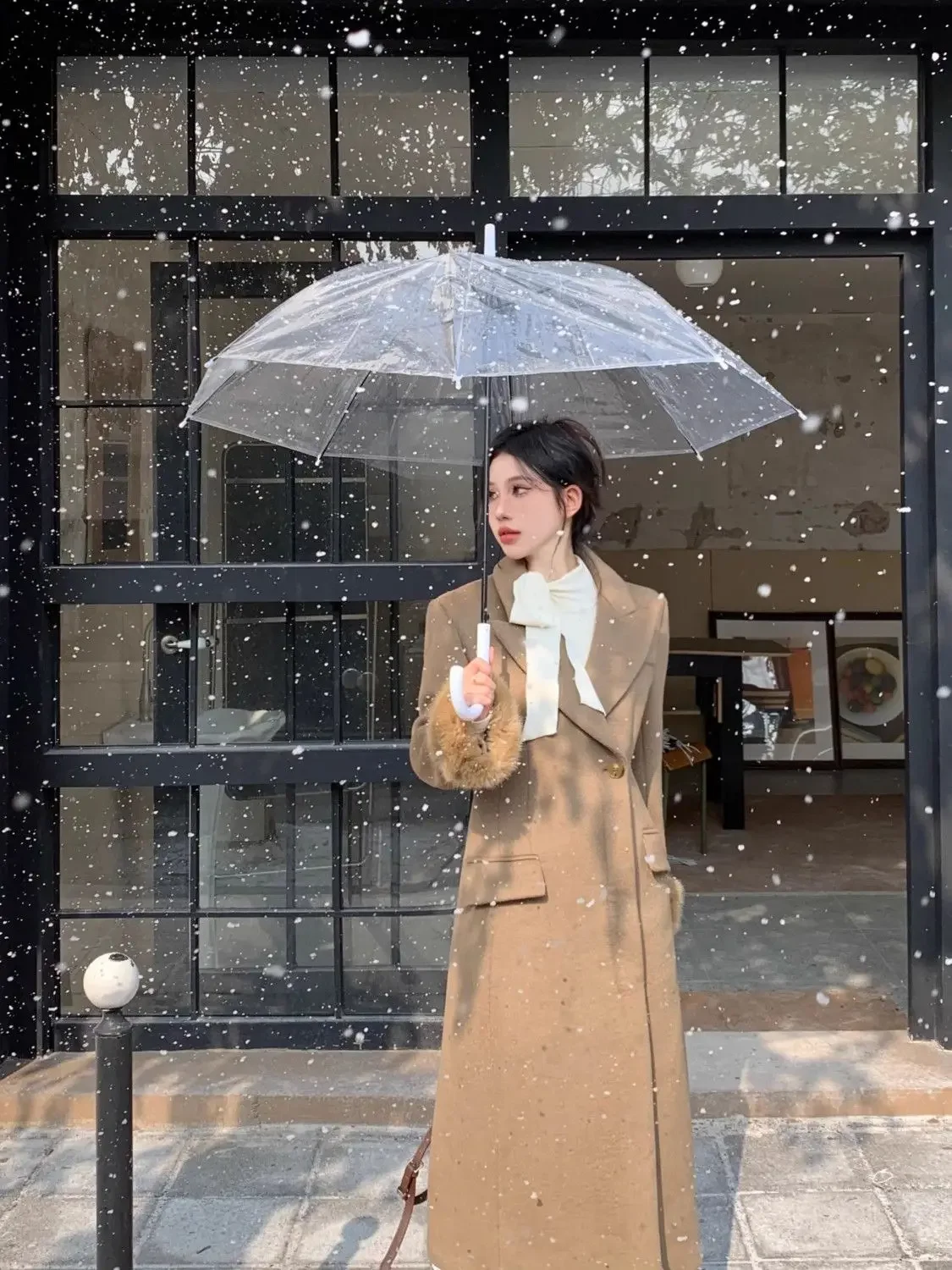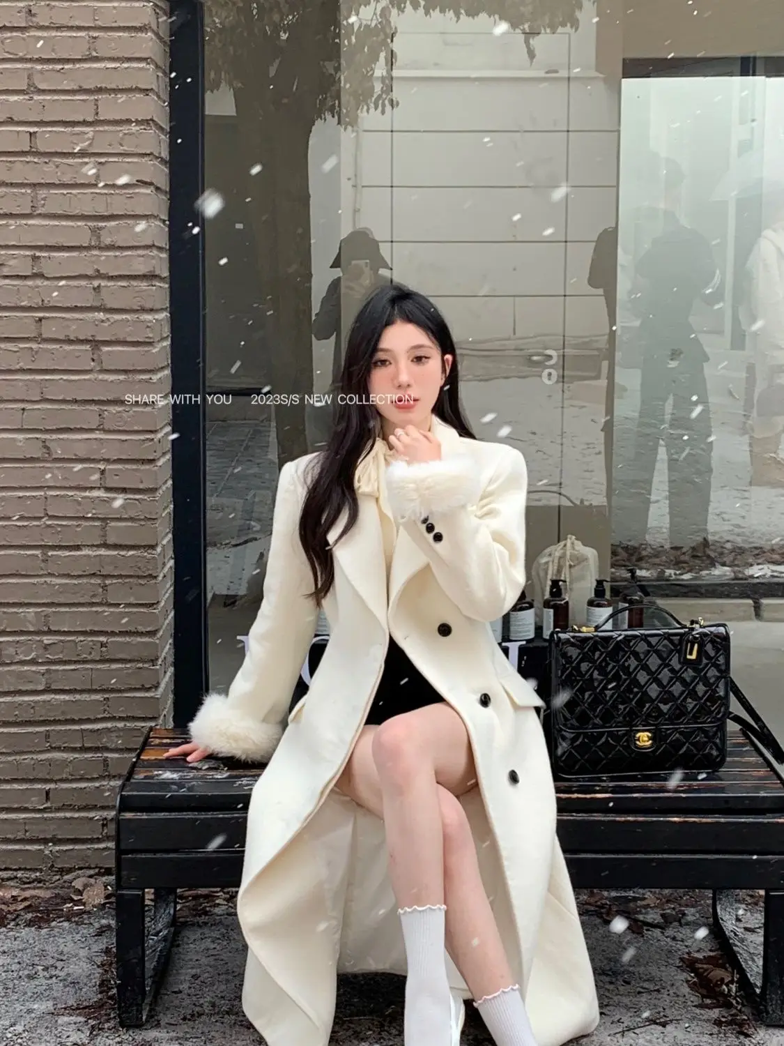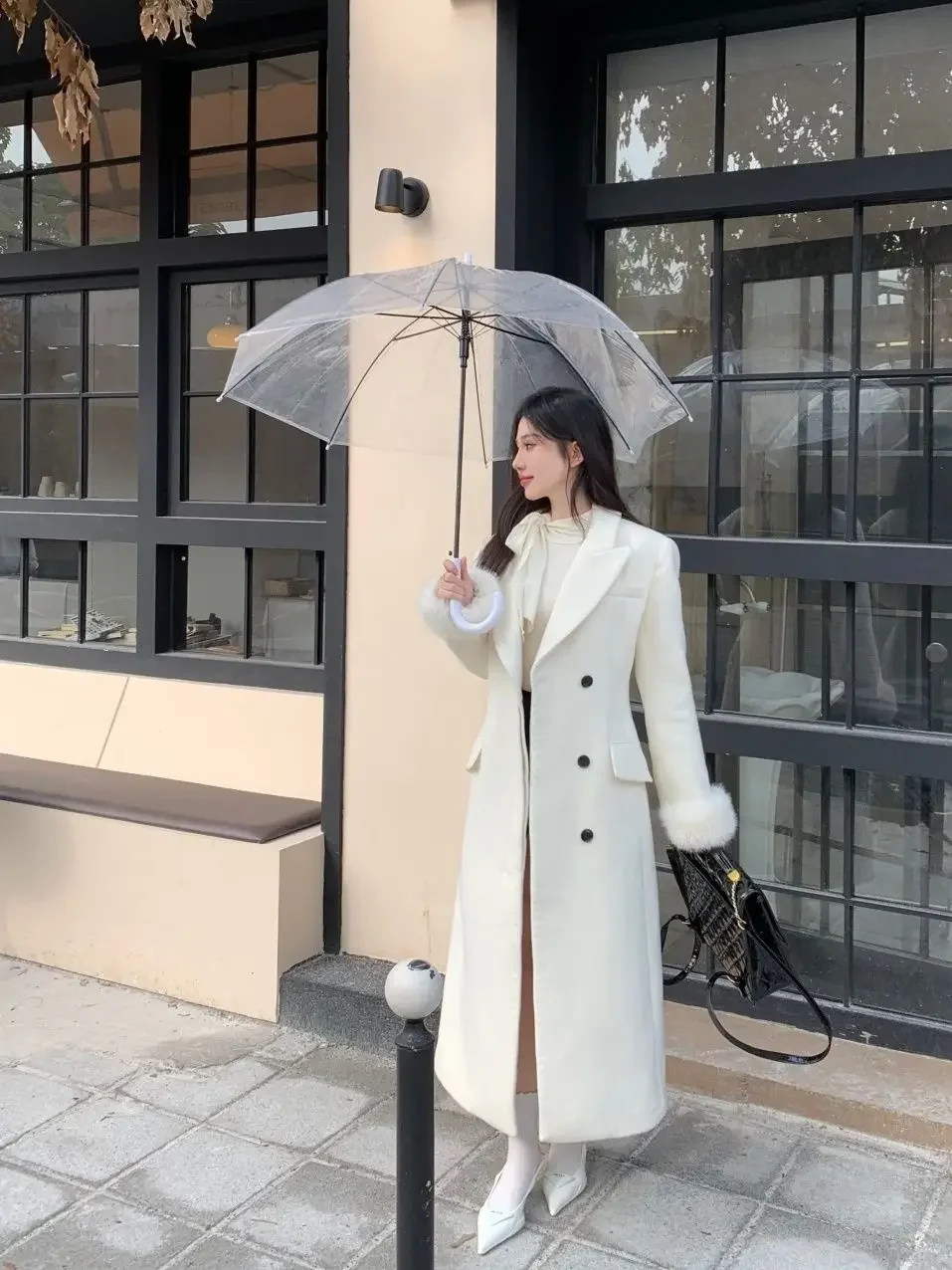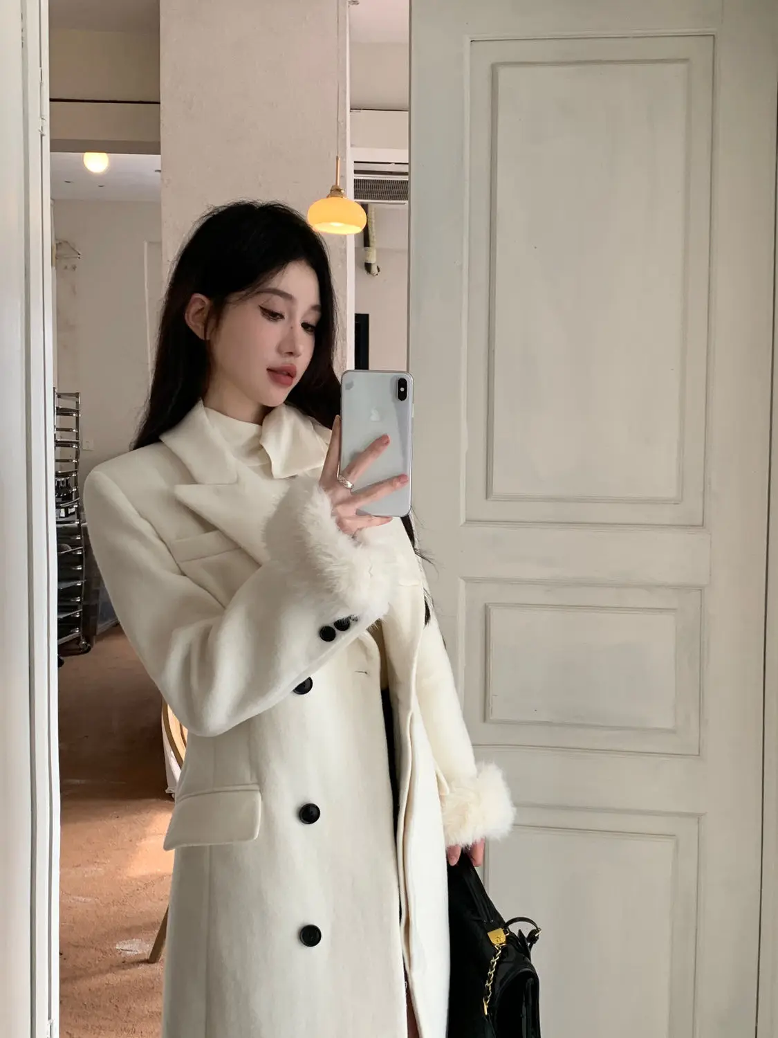 French Elegant Wool Blend Long Coat for Women Fall Winter