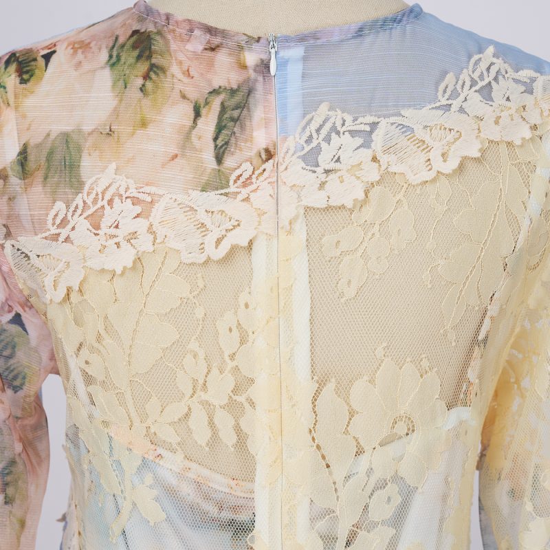 This French vintage-inspired dress features an elegant lace print, blending classic charm with a sophisticated design. Ideal for formal or semi-formal occasions, it adds a timeless touch to your wardrobe with its refined and stylish appearance.