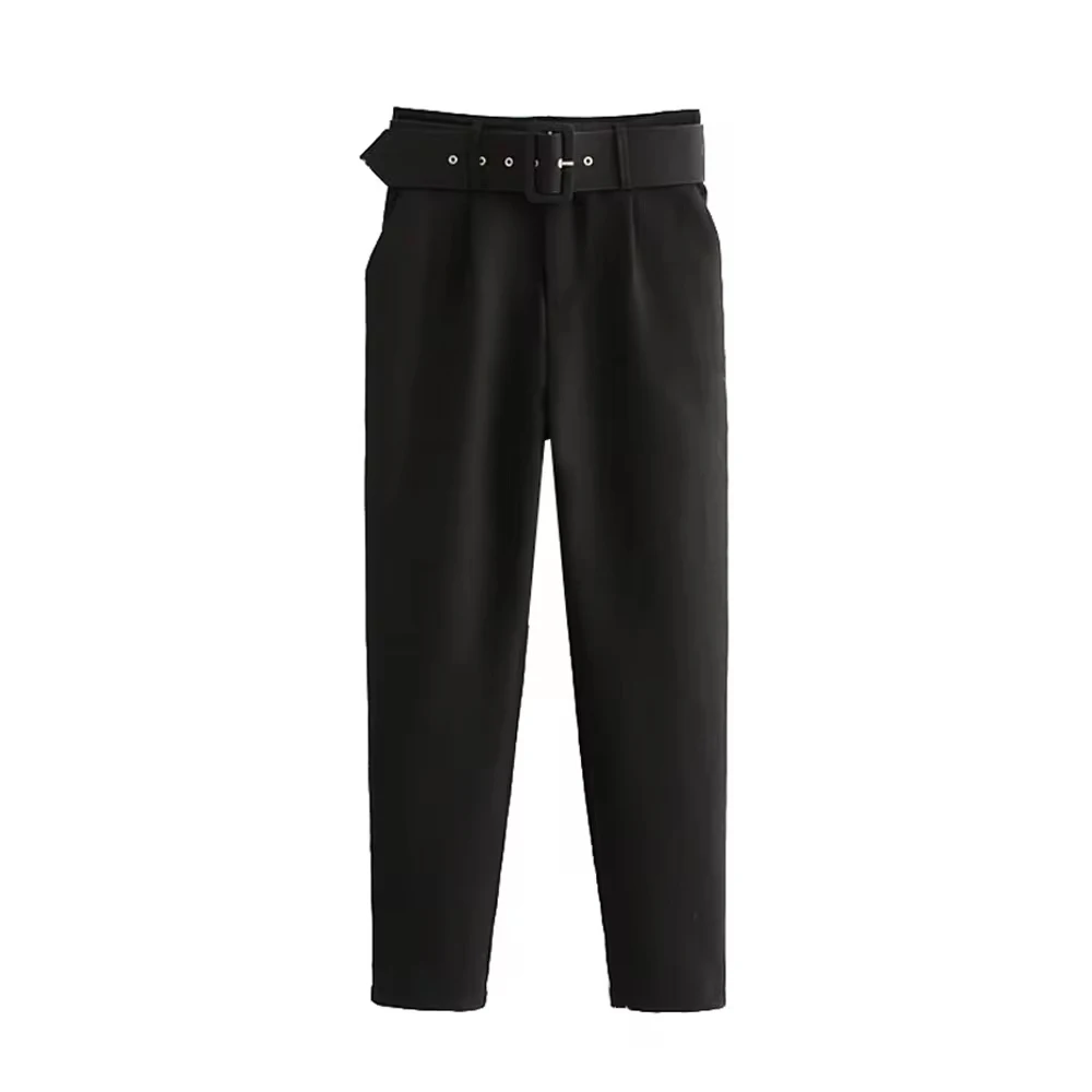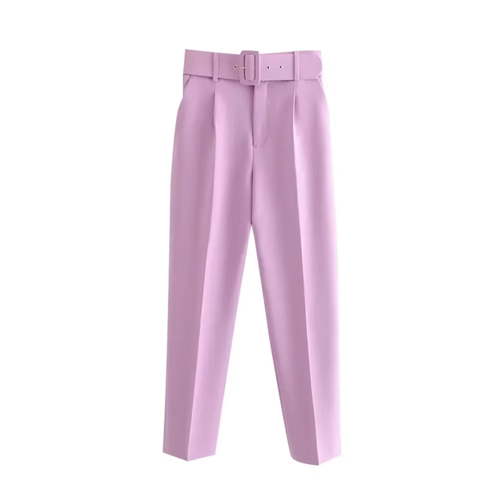 High-Waist Belted Office Trousers for Women