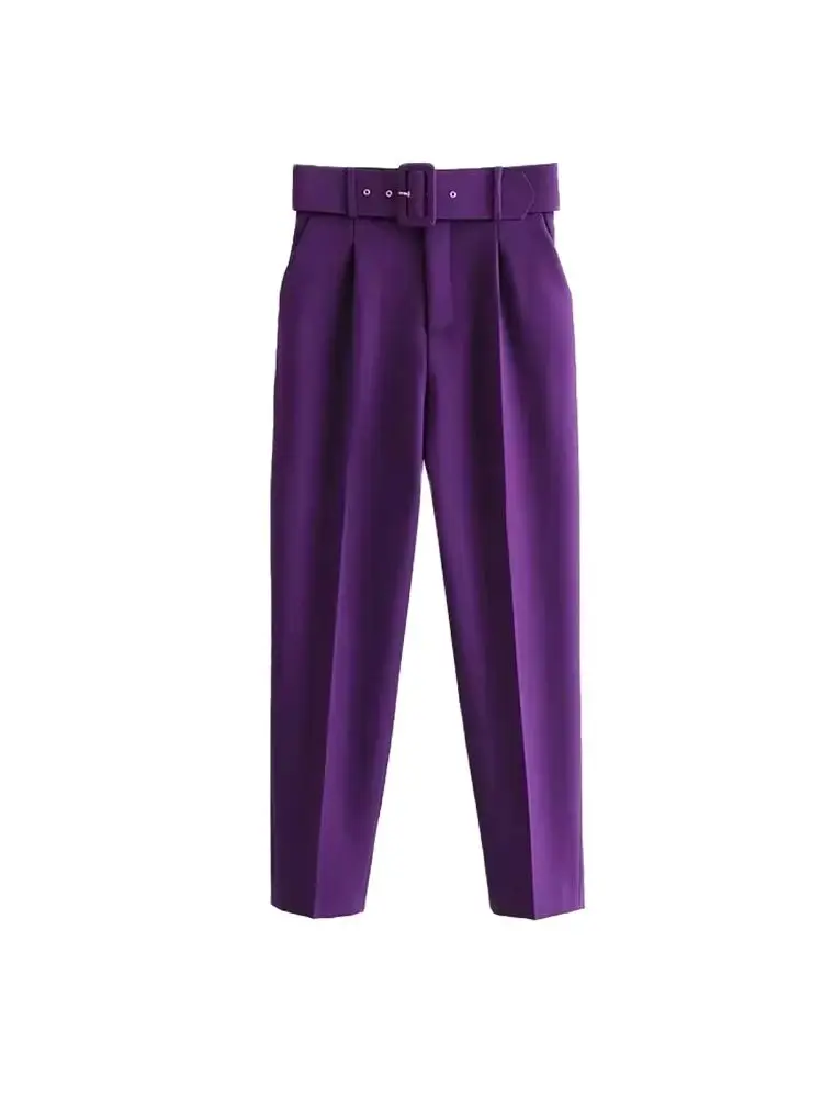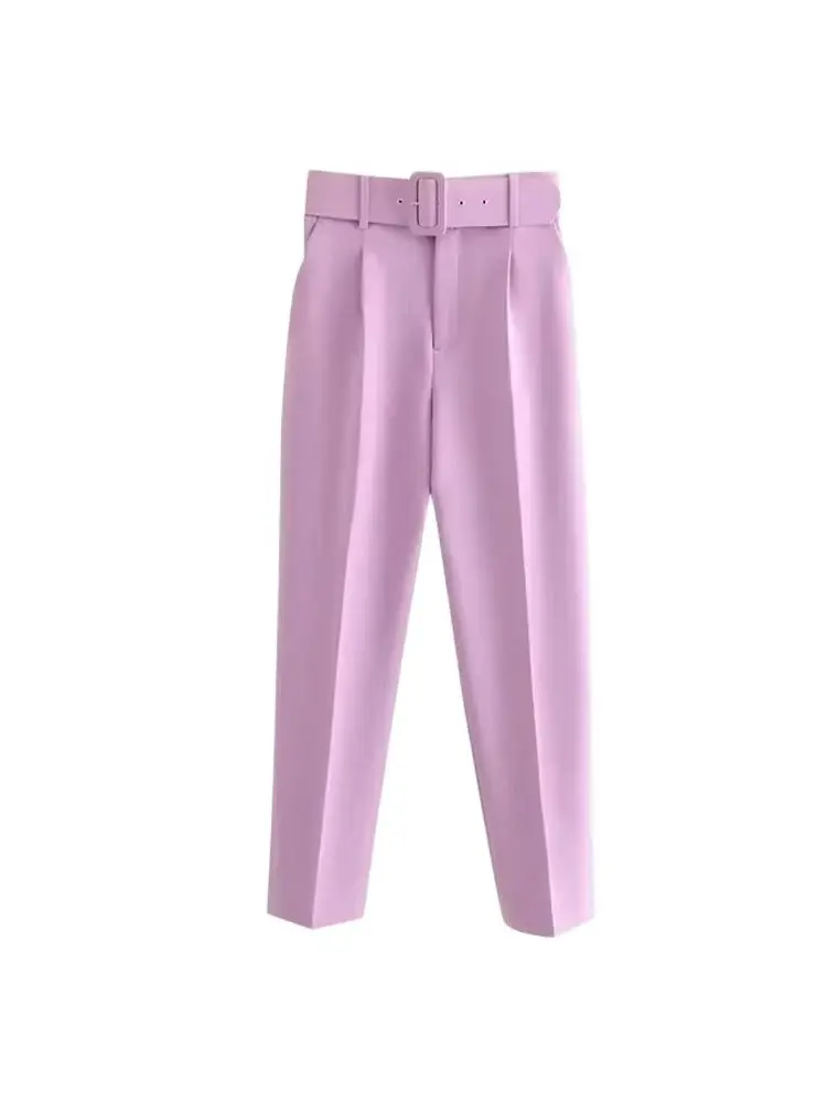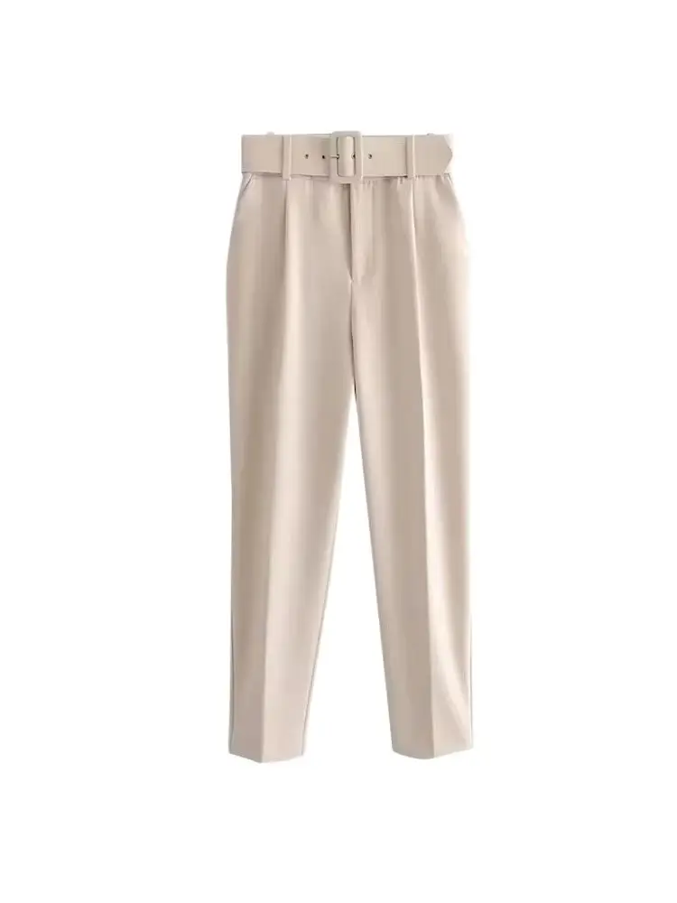 High-Waist Belted Office Trousers for Women