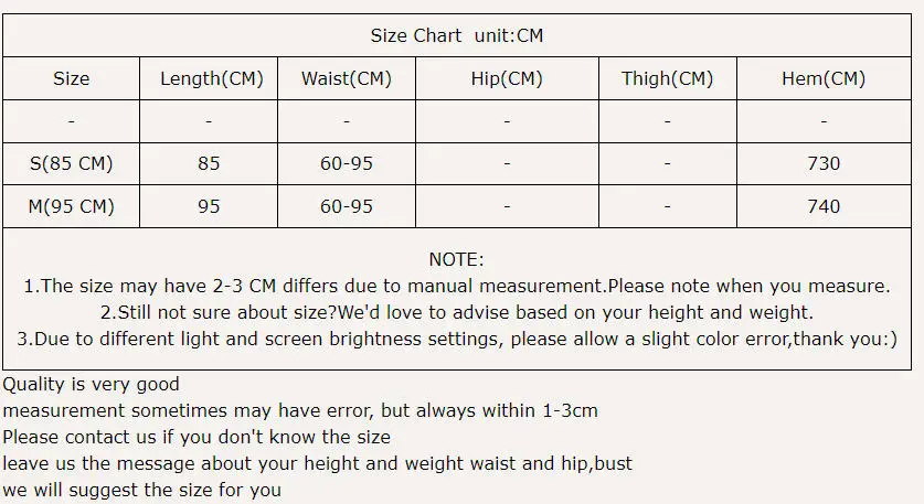 Size S and M is for you order the skirt,actually only have length 85 cm and length 95 cm two size.Waist are same.High stretch.