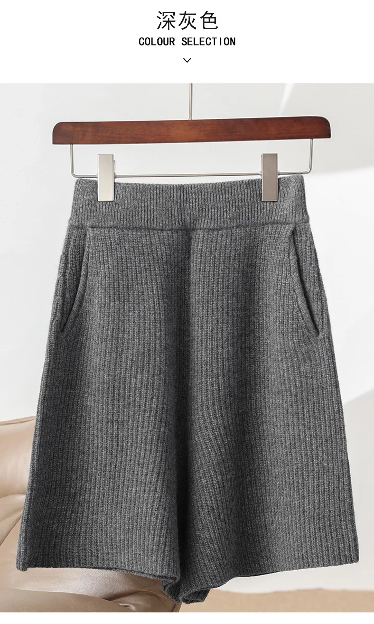 High Waist Wool Shorts Women Knitted Pull On Fall Winter Wear