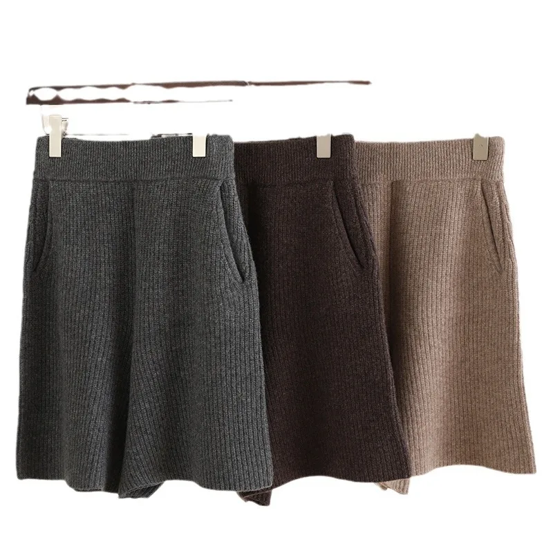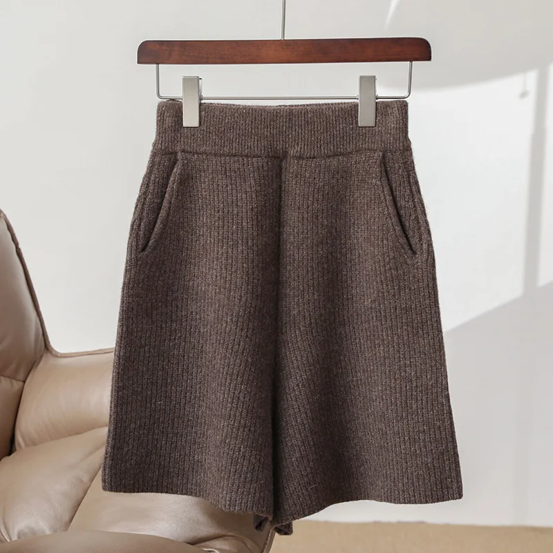 High Waist Wool Shorts Women Knitted Pull On Fall Winter Wear