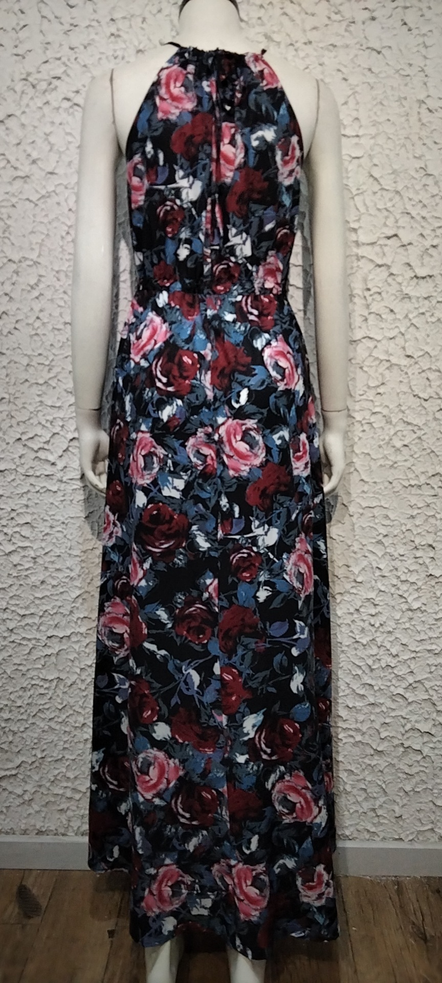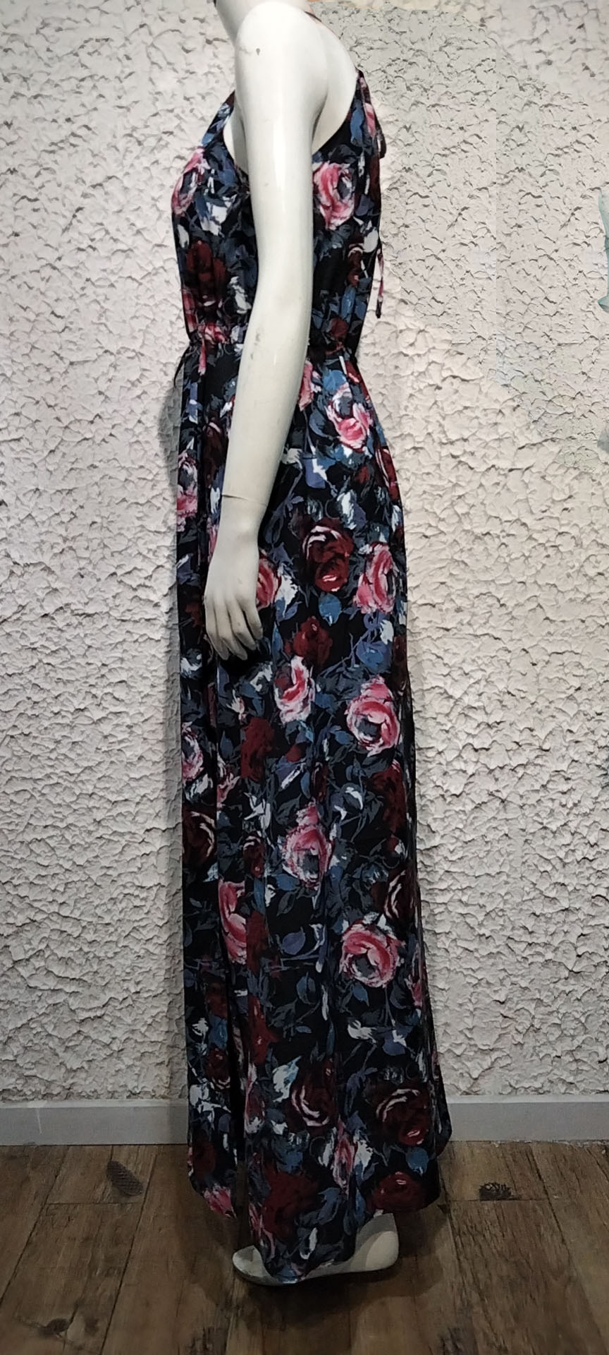 Holiday Floral Print Sleeveless Split Large Swing Halter Dress Sundress