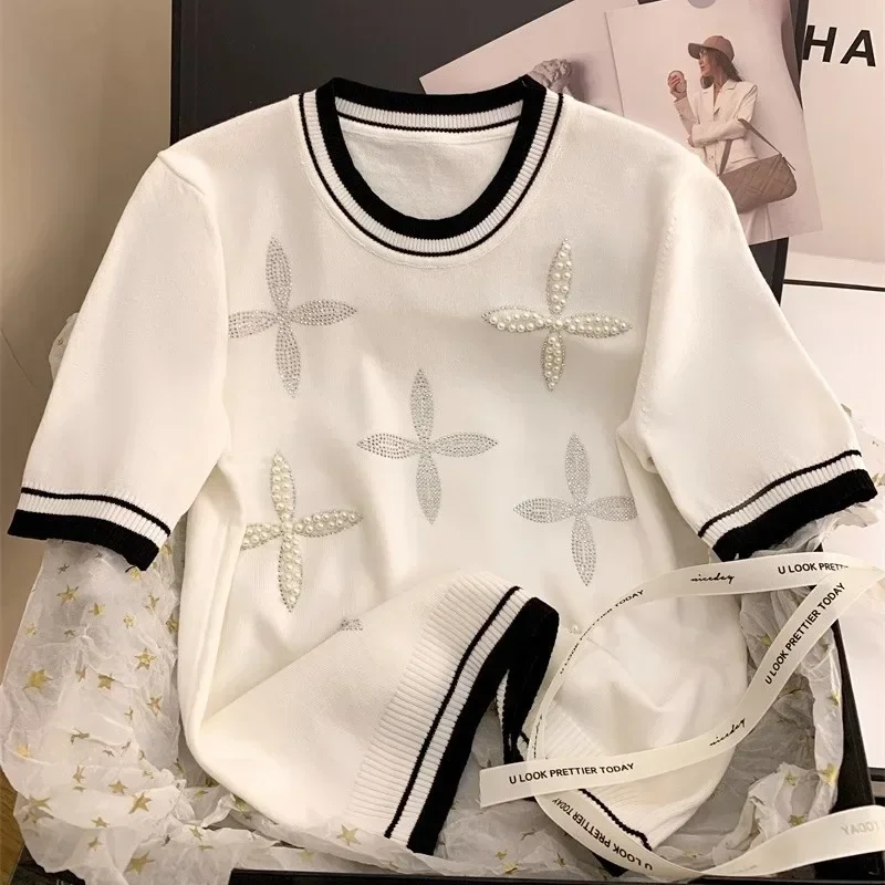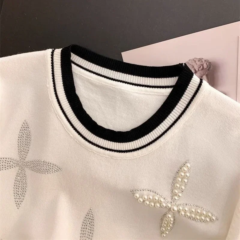 Ice Silk Beaded Knit T-Shirt