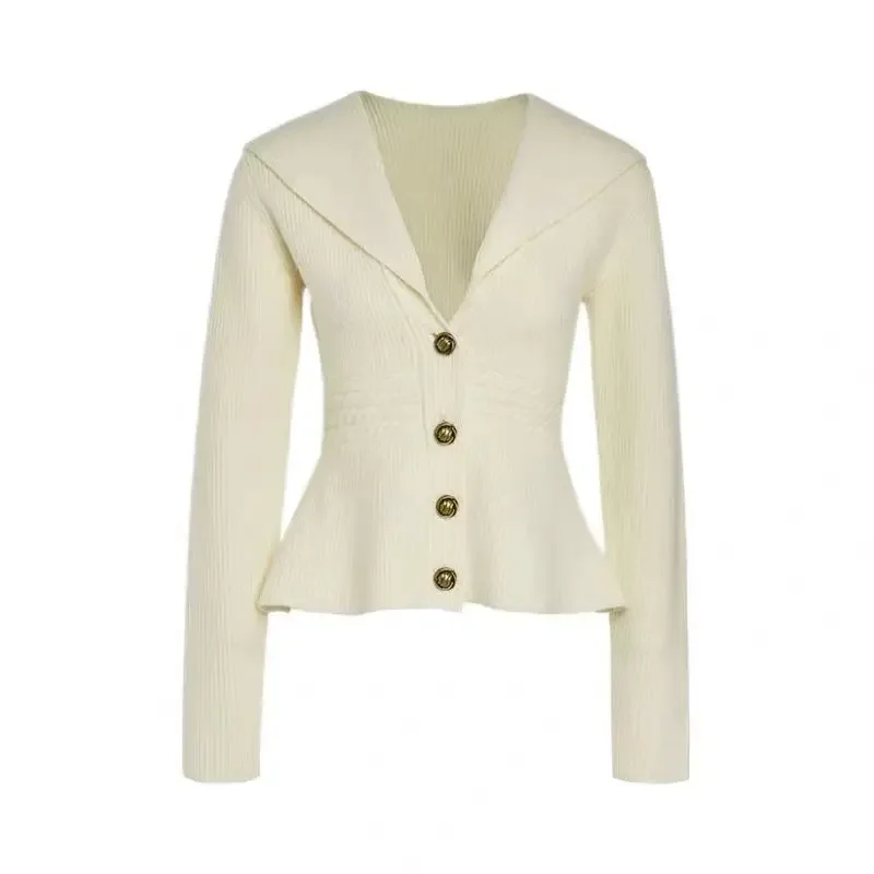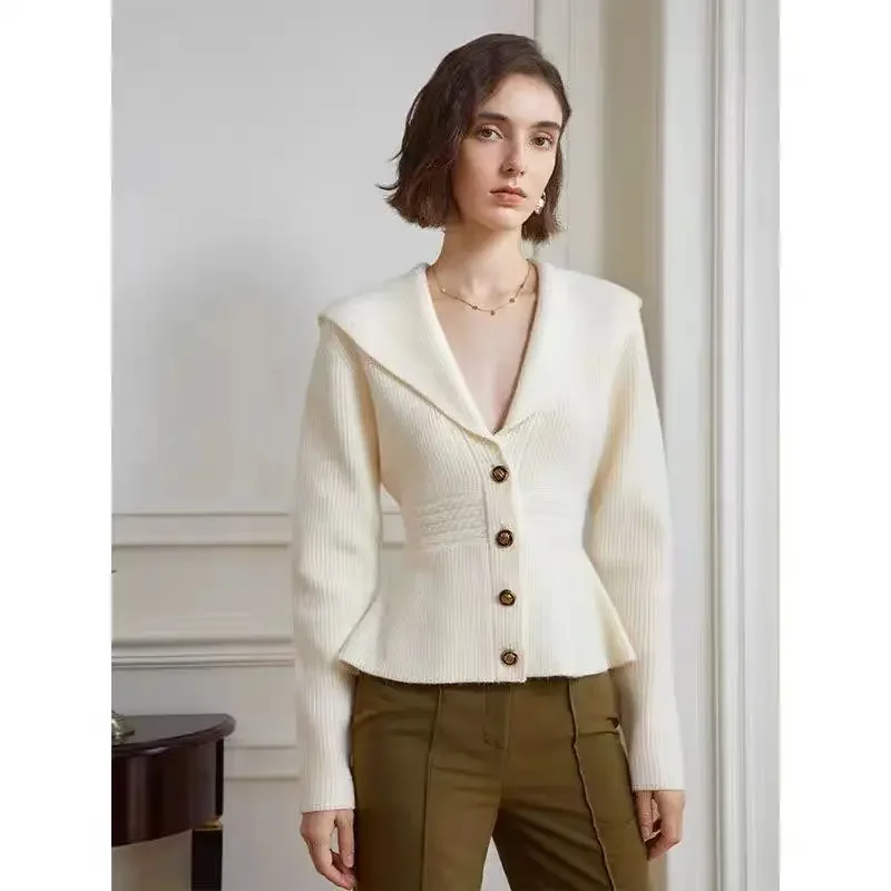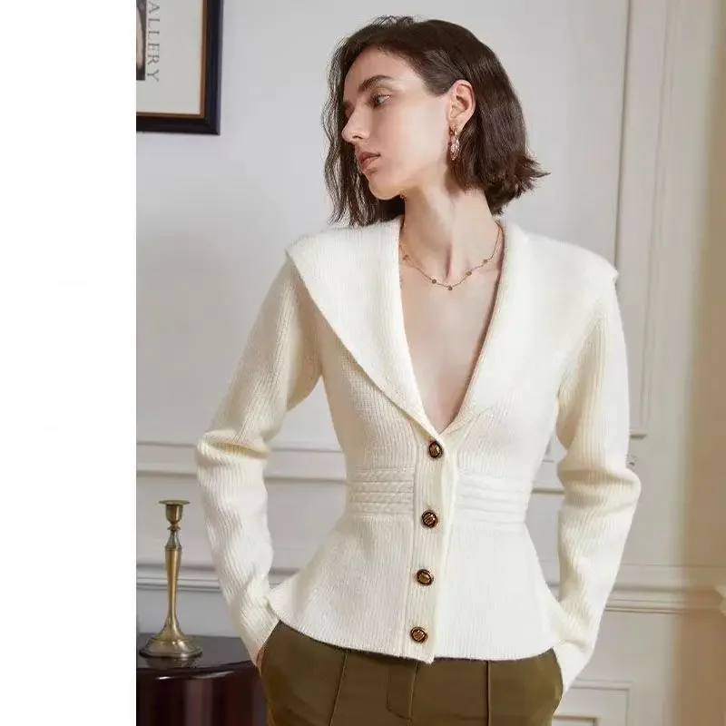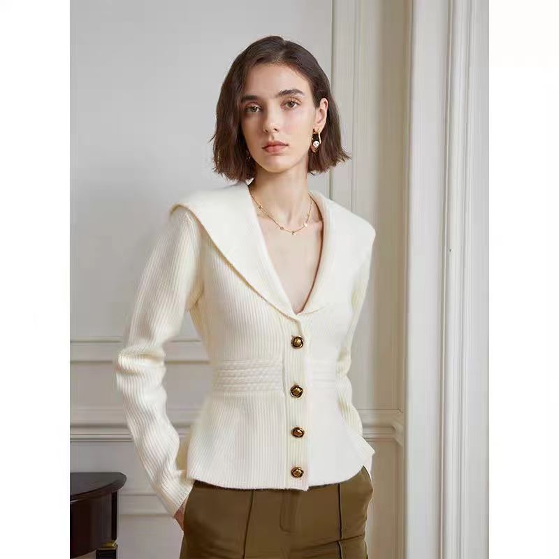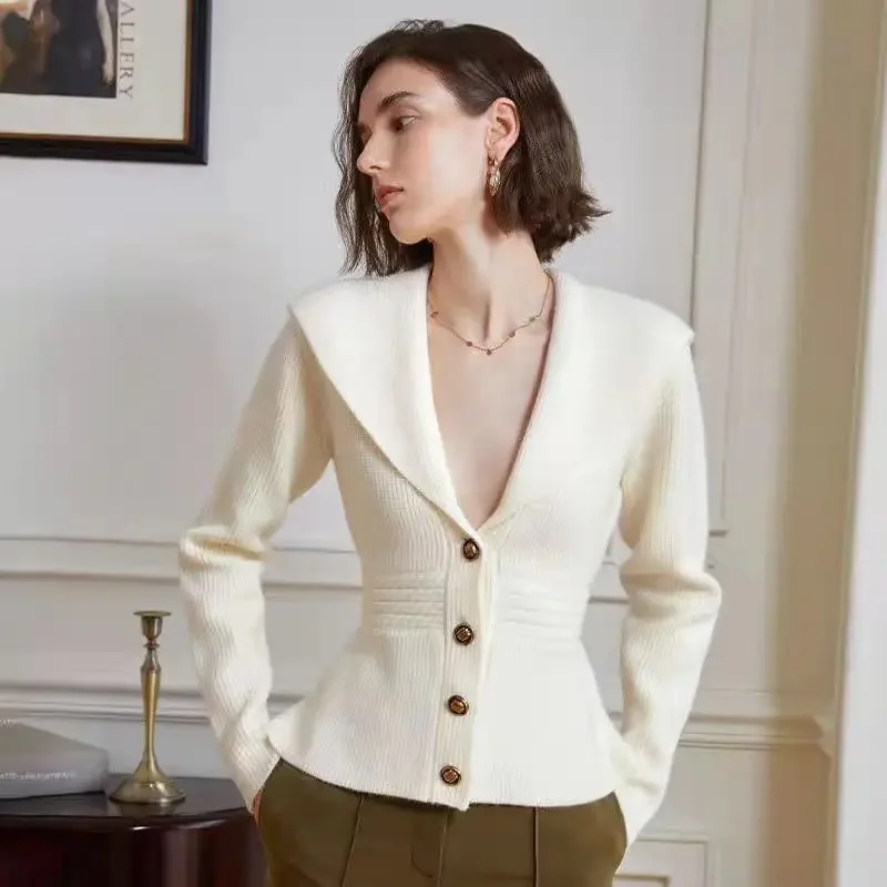 Knitted Cardigan with Big Lapel for Women