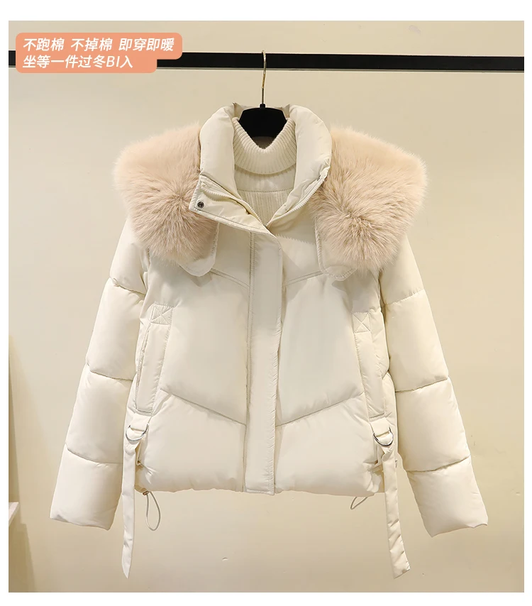 Korean Fashion Short Fur Collar Parka for Women Winter Coat
