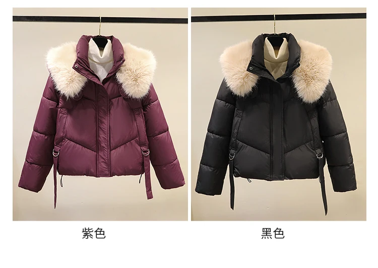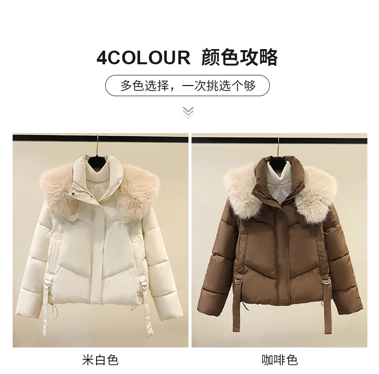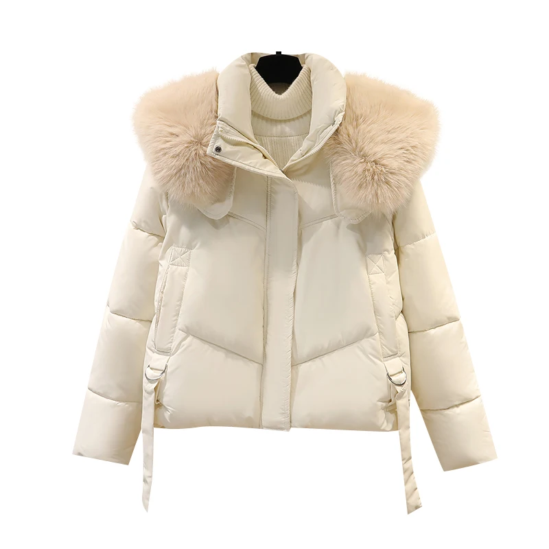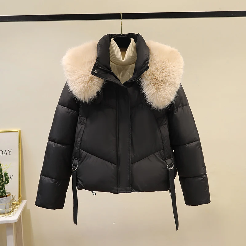 Korean Fashion Short Fur Collar Parka for Women Winter Coat