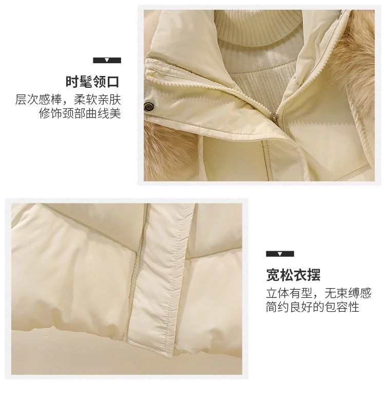 Korean Fashion Fur Collar Parka for Women Warm Winter Coat