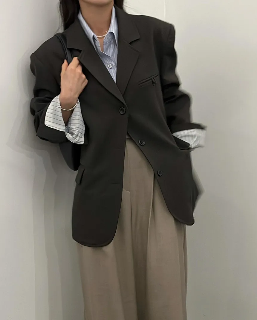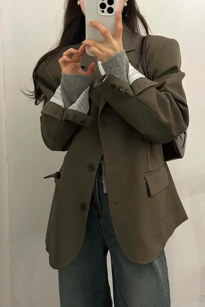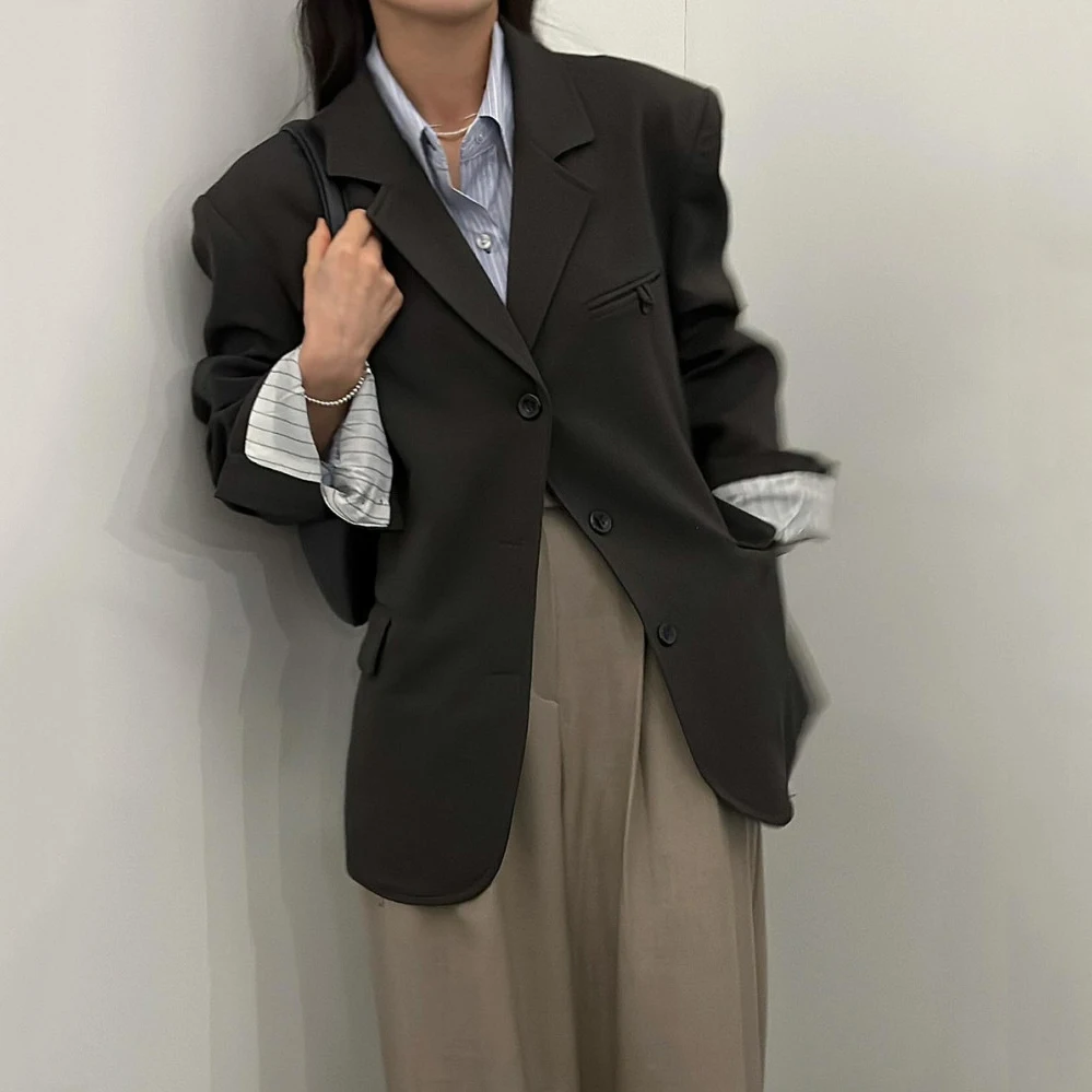Korean Fashion Loose Straight Blazer Jacket for Women