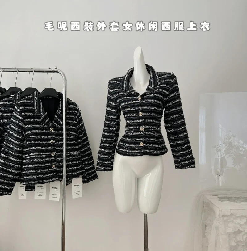 Korean Fashion Striped Slim Blazer Jacket for Women