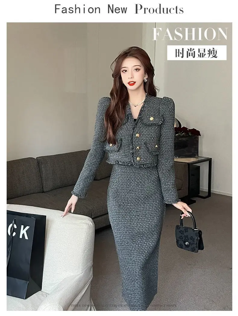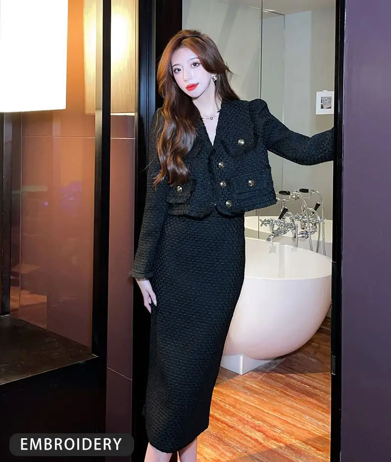 Korean Slim Short Jacket & French Long Skirt Set