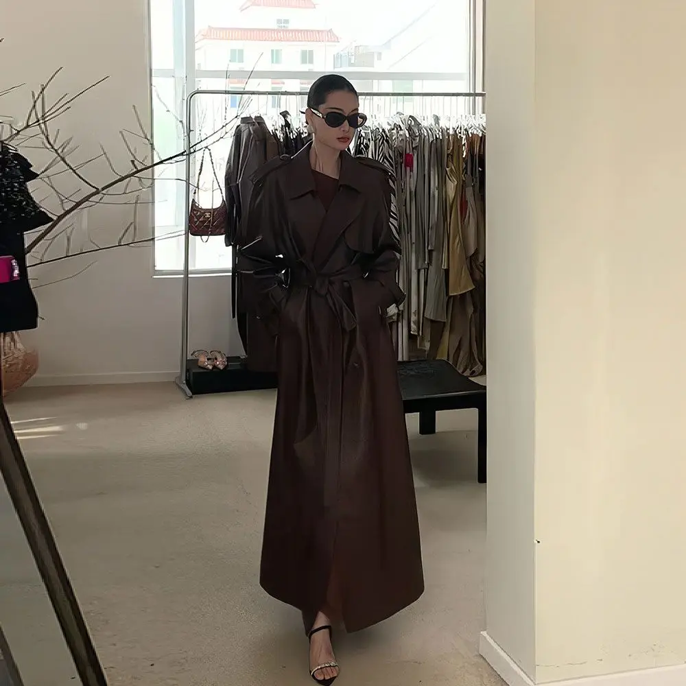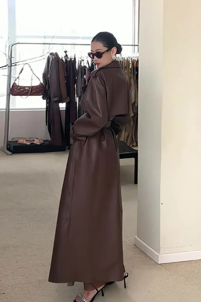Luxury Brown Slim Fit Leather Trench Jacket