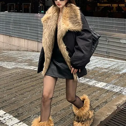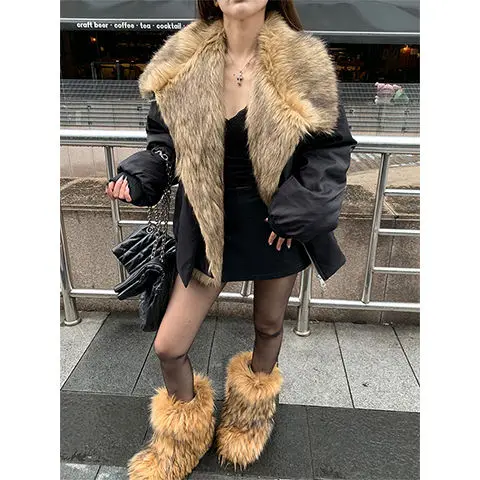 Luxury Oversized Quilted Winter Parka with Faux Fur Hood