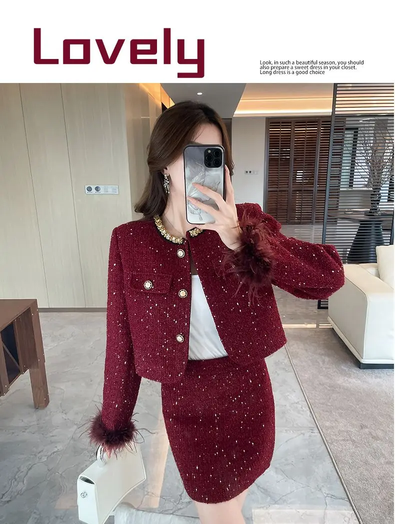 Luxury Quilted Sequin Two-Piece Suit