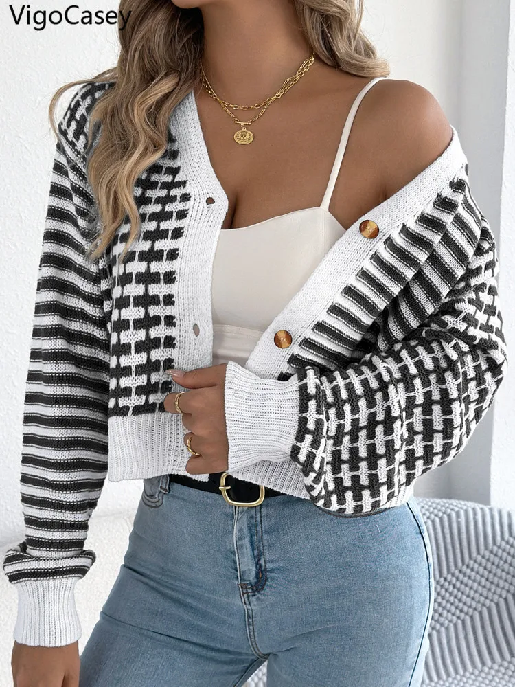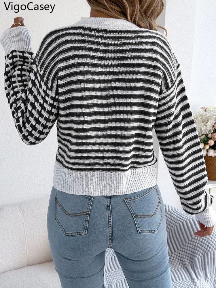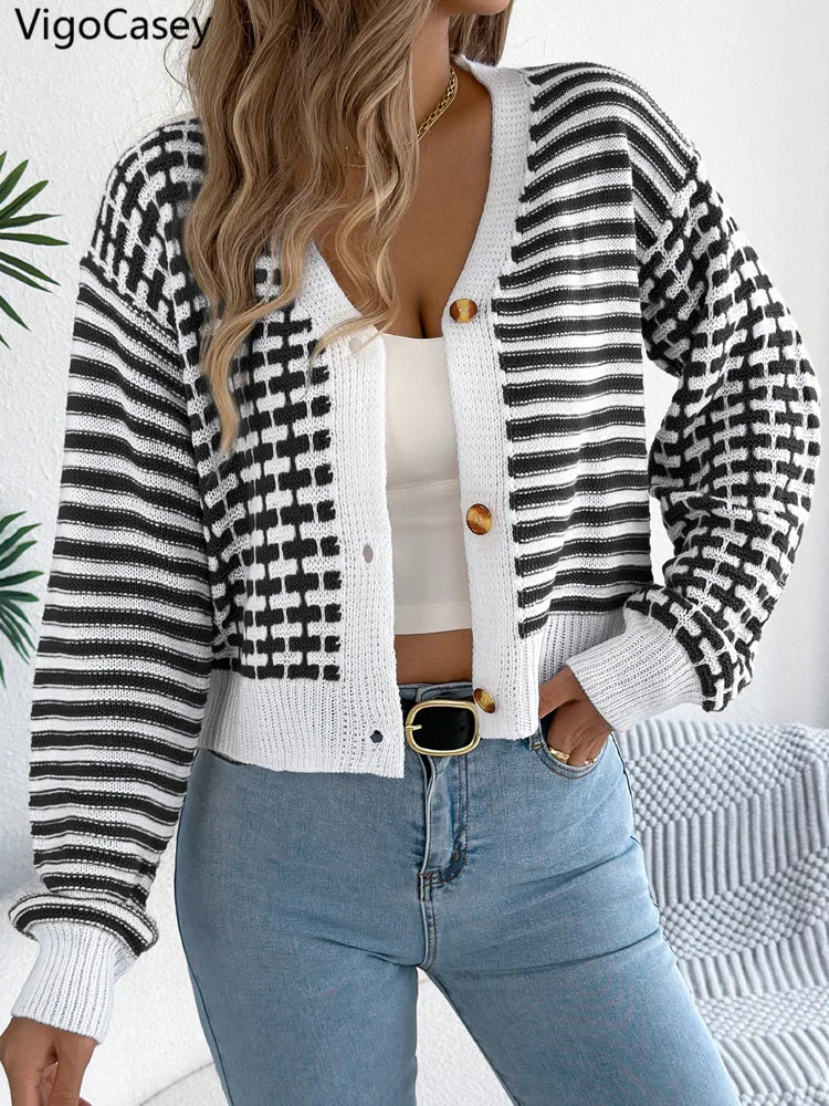 men’s Stripe Long Sleeve Knit Cardigan Autumn Sweater Coat