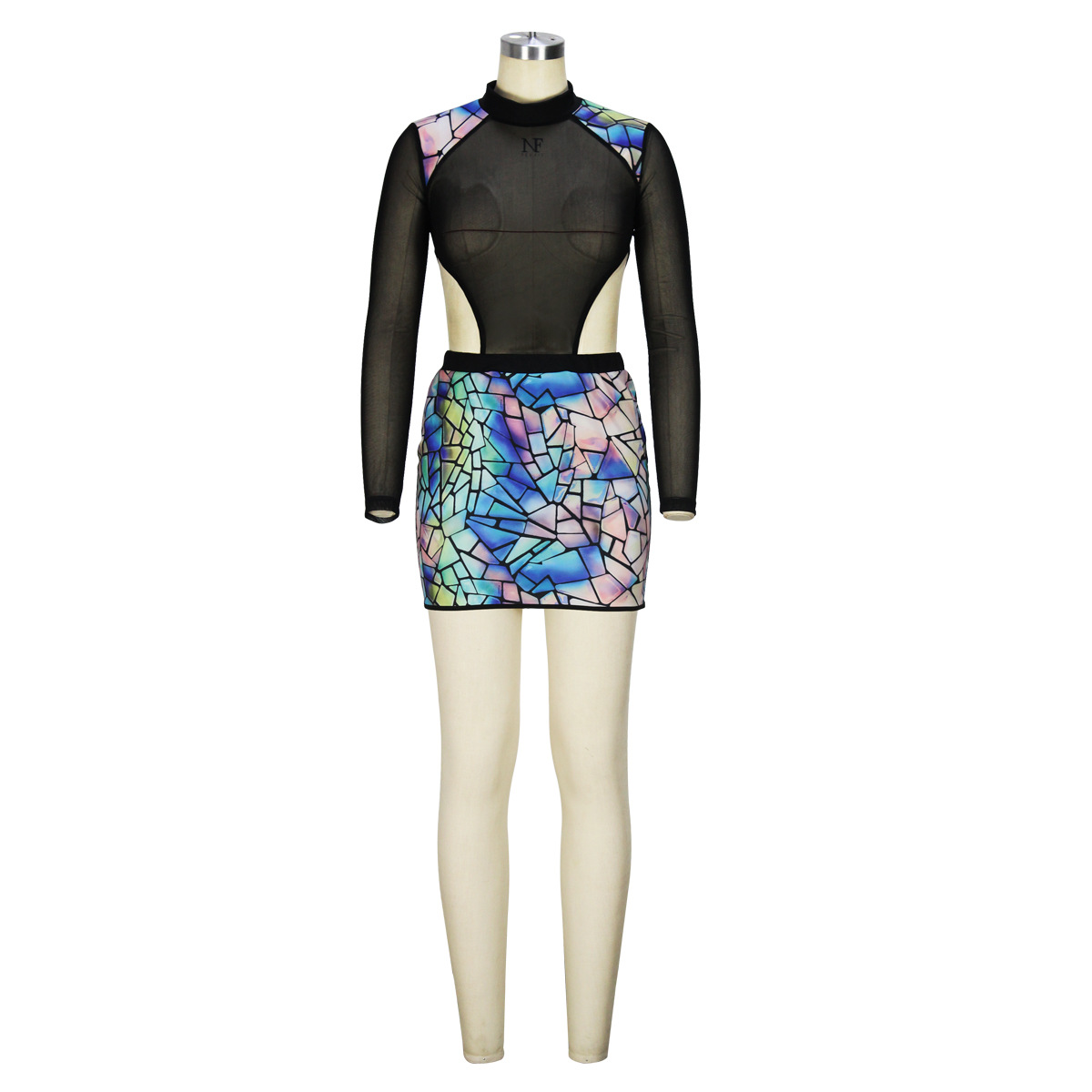 Mesh Stitching See-Through Turtleneck Sexy Dress