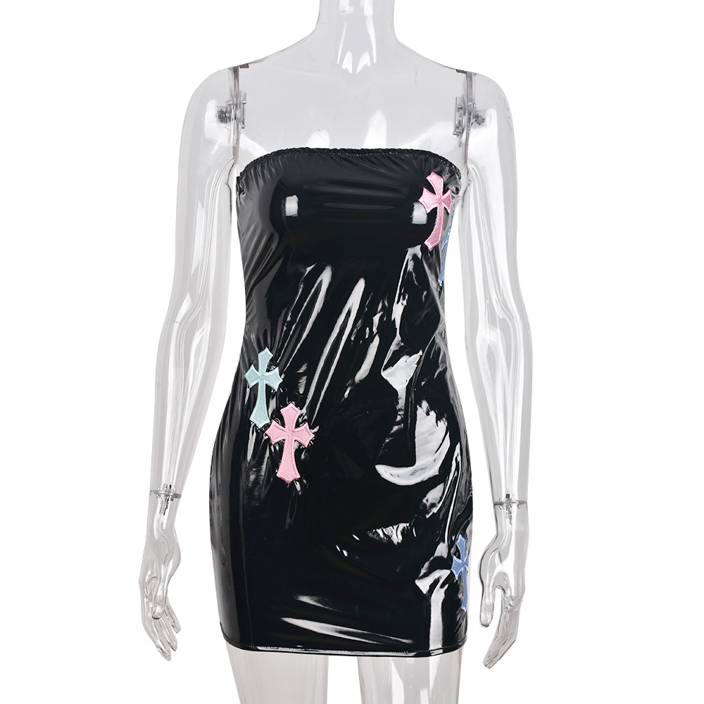 Metallic Stretch Cross Embroidery Wrapped Dress