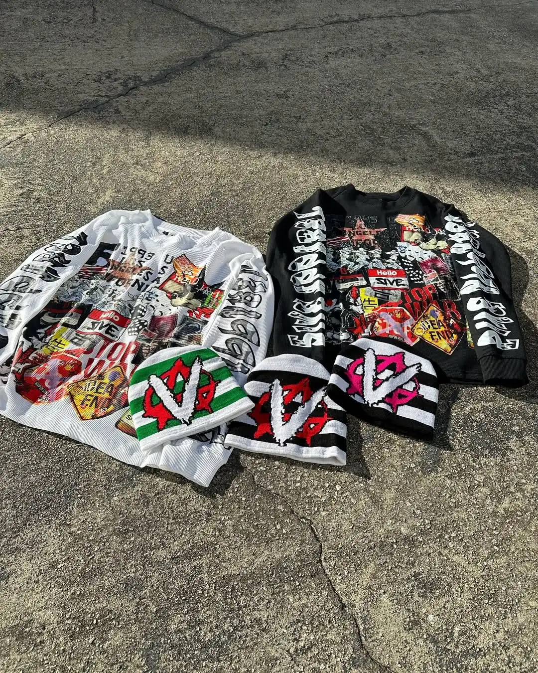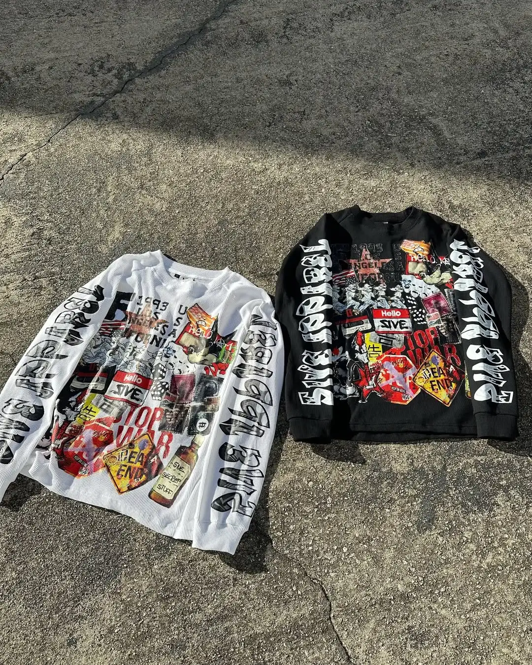 Multi-Graphic Printed Long Sleeve Tee