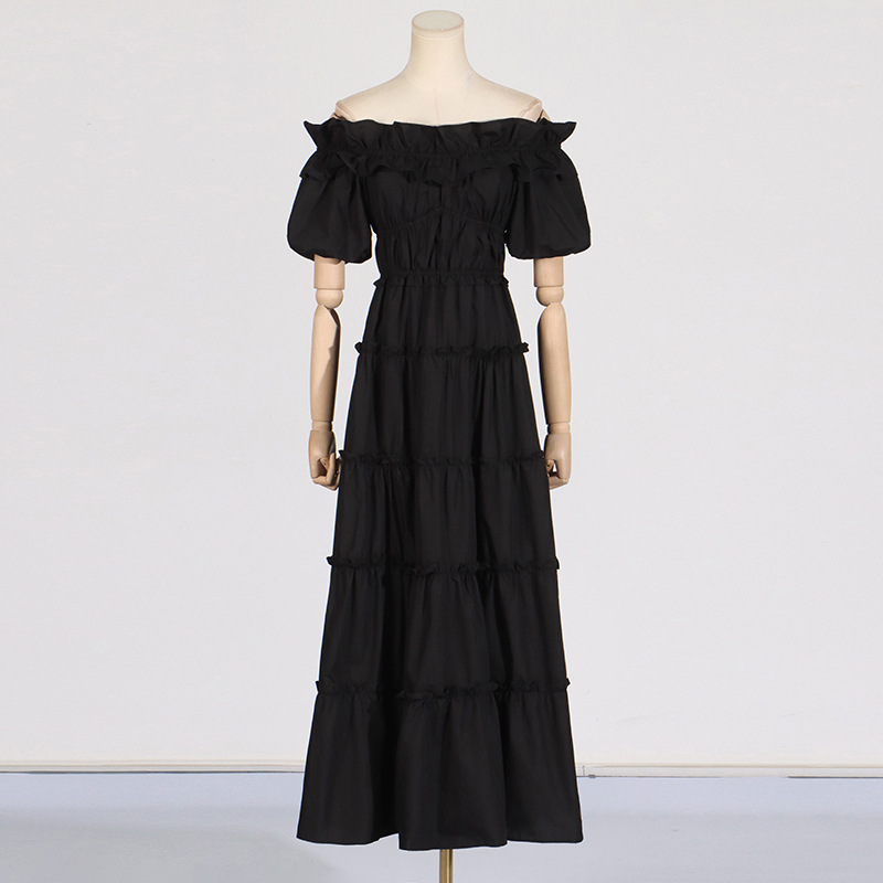 Off Shoulder Ruffled Collar Puff Sleeve Summer Dress