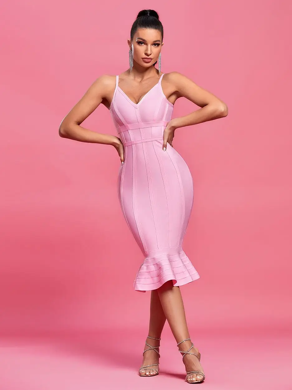 Pink Mermaid Bandage Bodycon Midi Dress