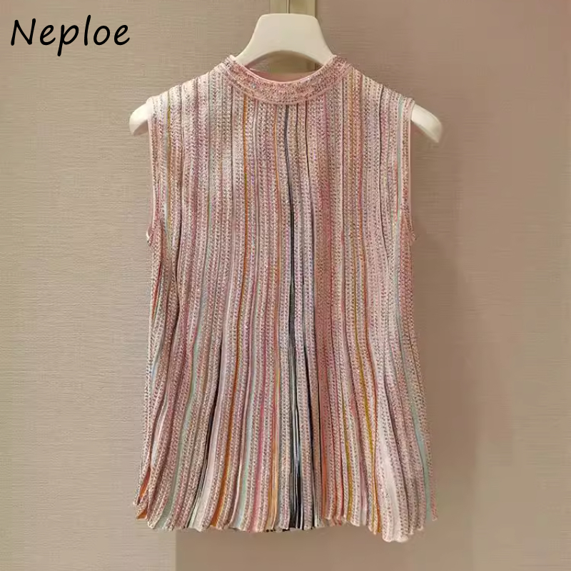 Pink Striped Sleeveless O-Neck E-Girl Top