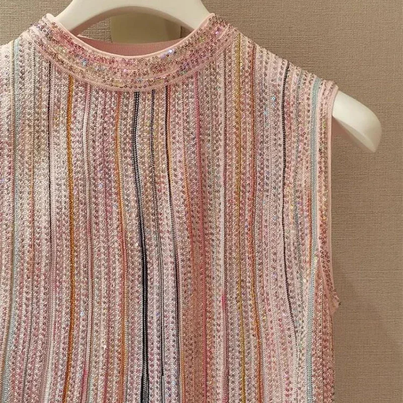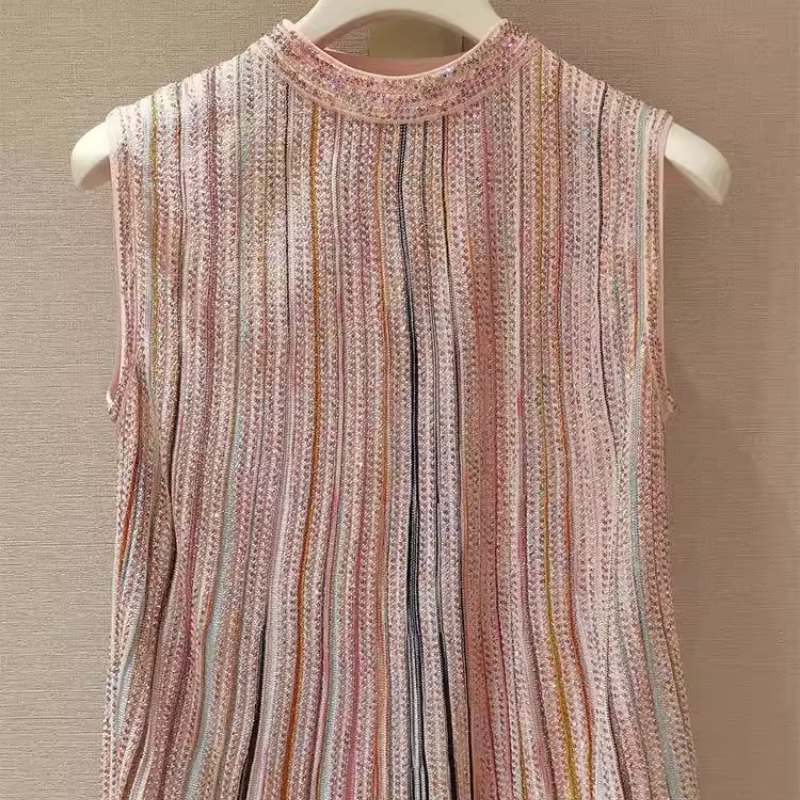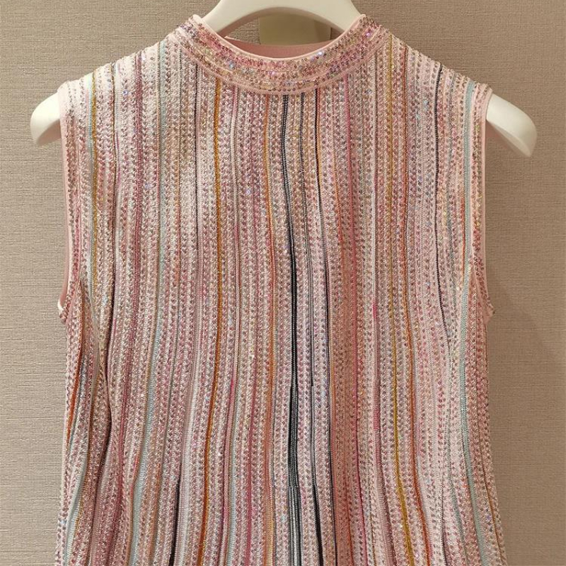 Pink Striped Sleeveless O-Neck E-Girl Top