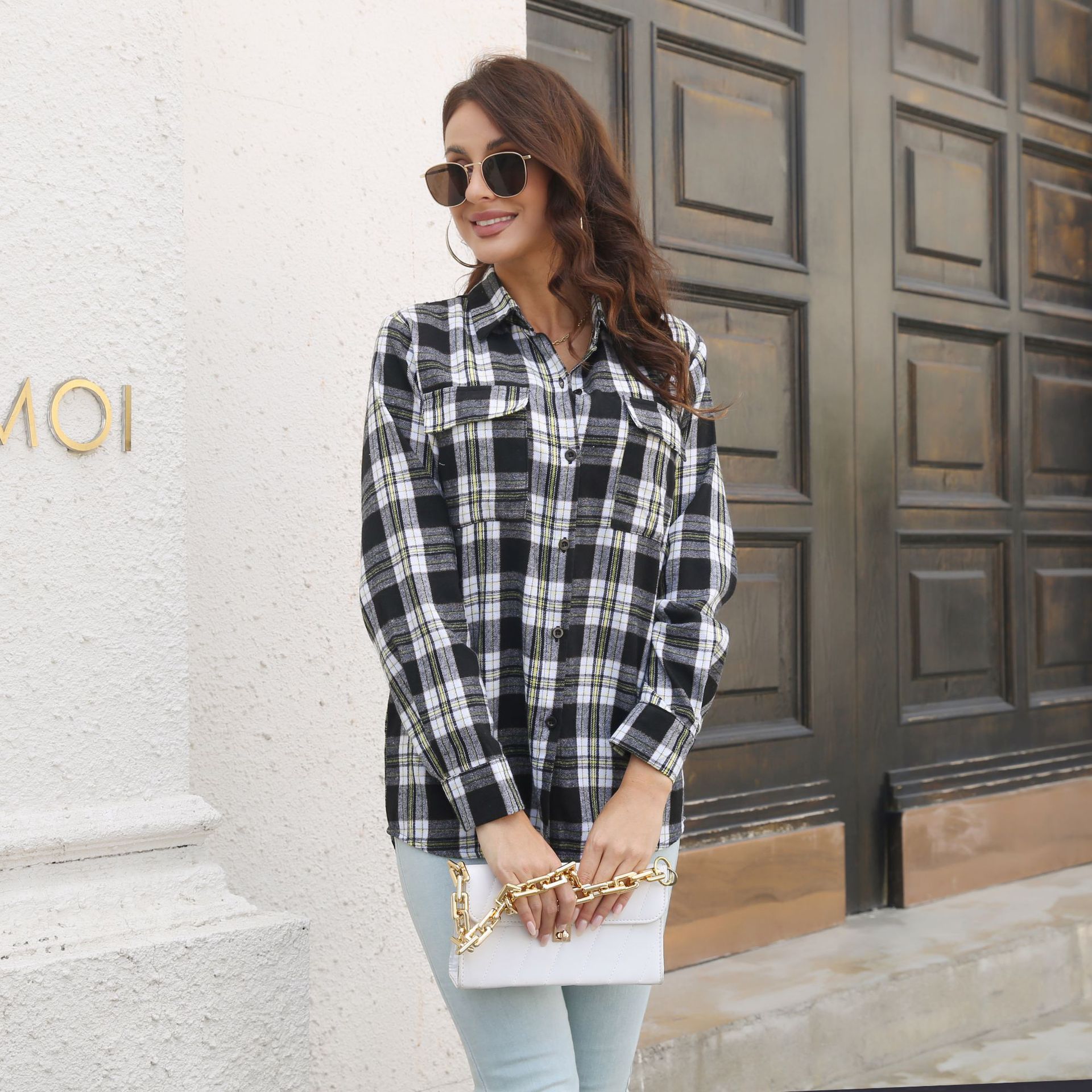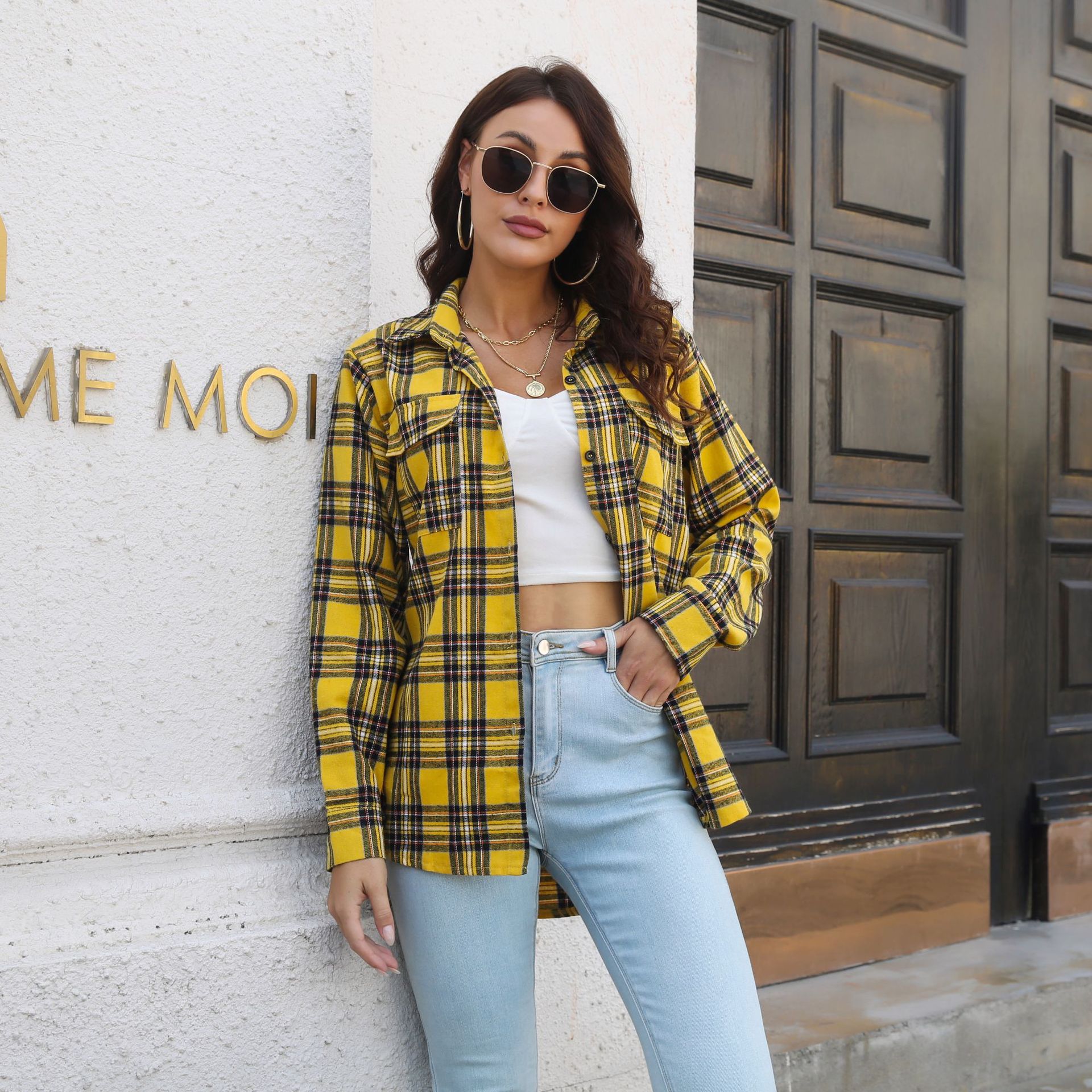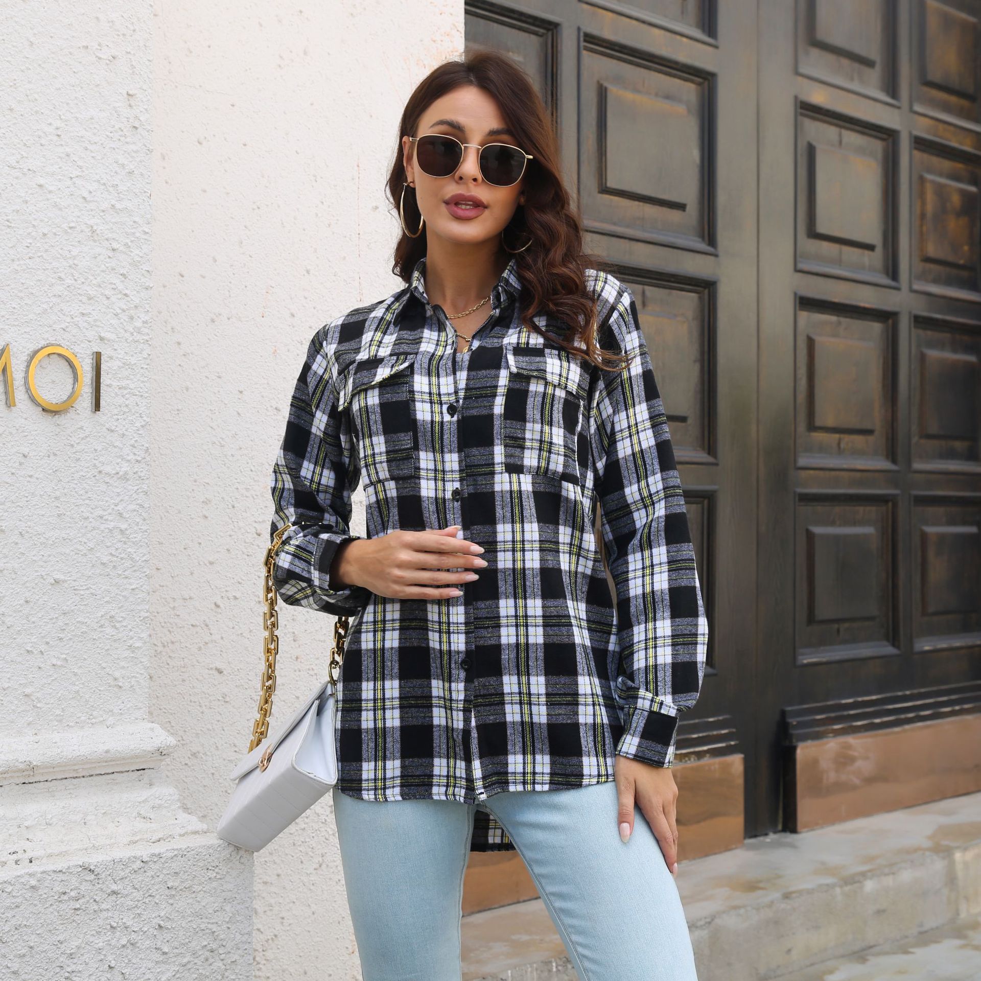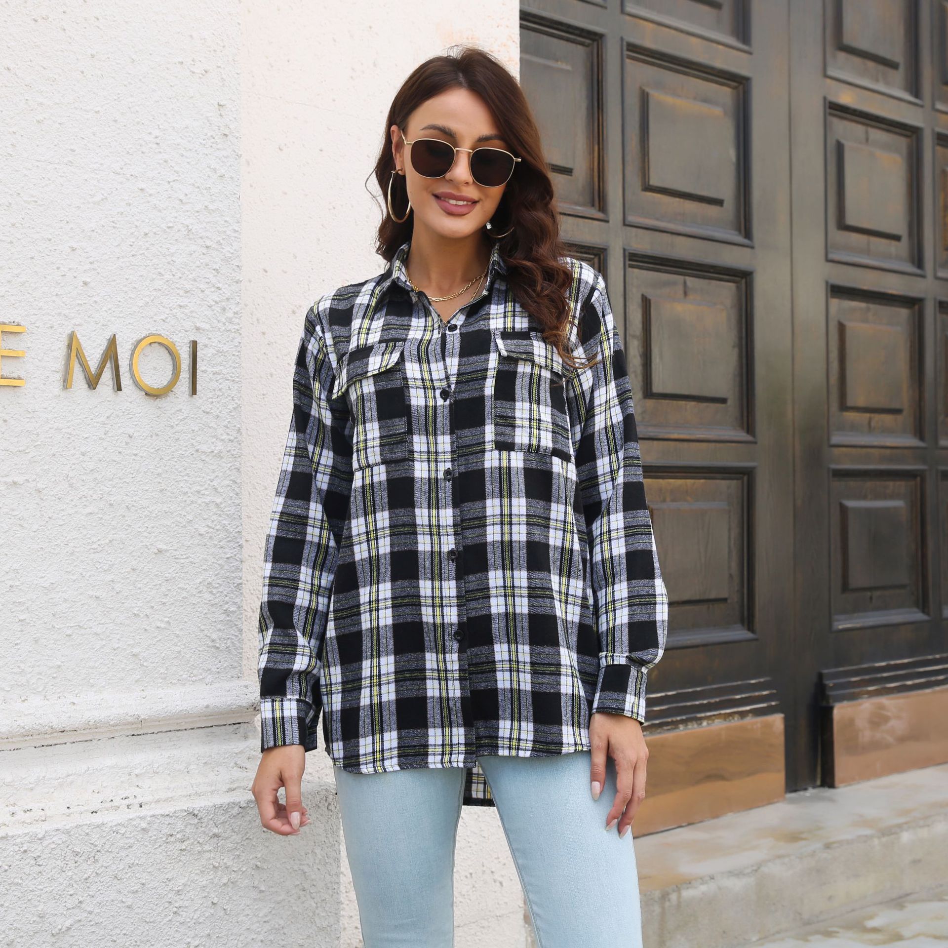 Be the first to review “Plaid Shirt Brushed Long Sleeve Mid-Length Loose Shirt Women Top Women Clothing”