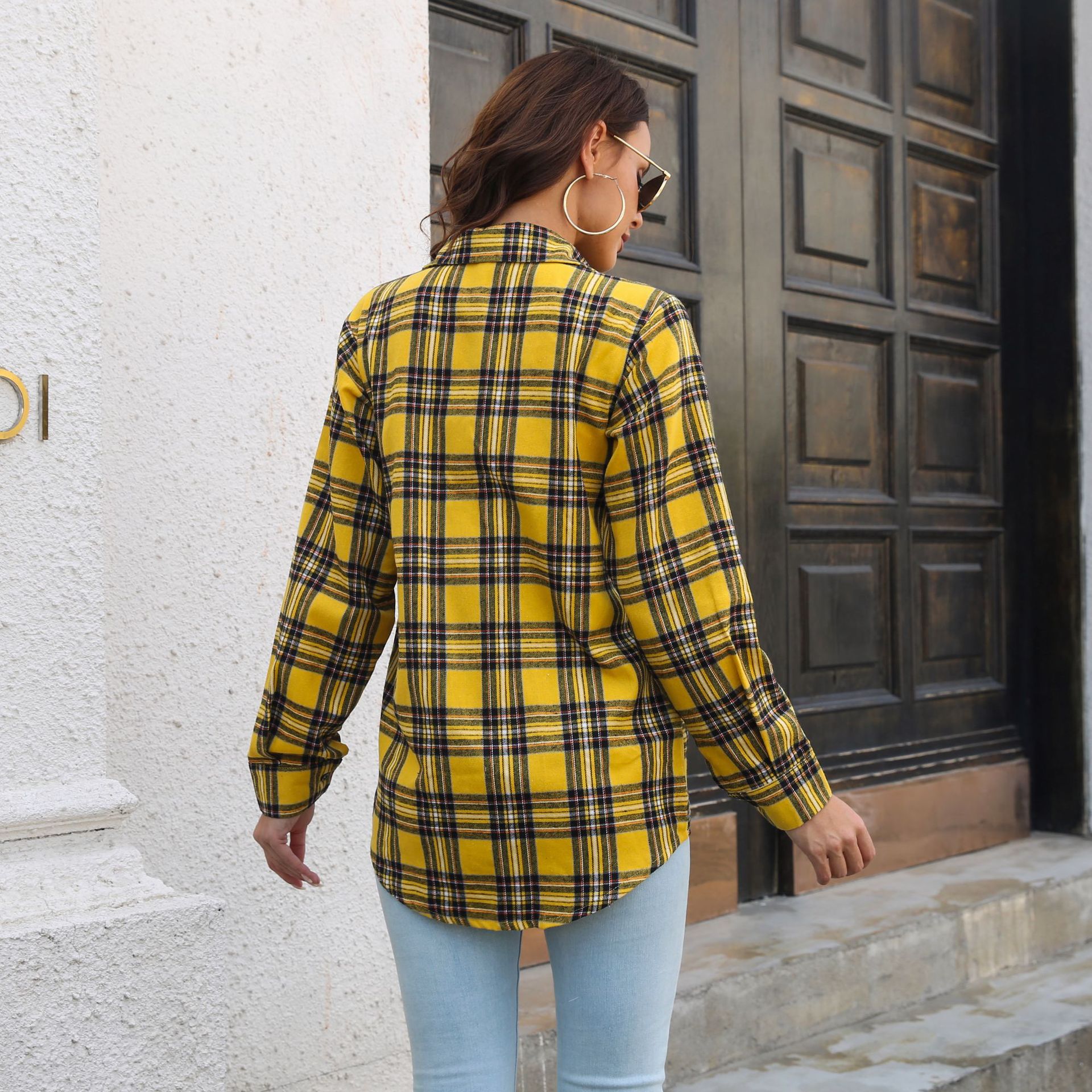Plaid Shirt Brushed Long Sleeve Mid-Length Loose Shirt Women Top Women Clothing